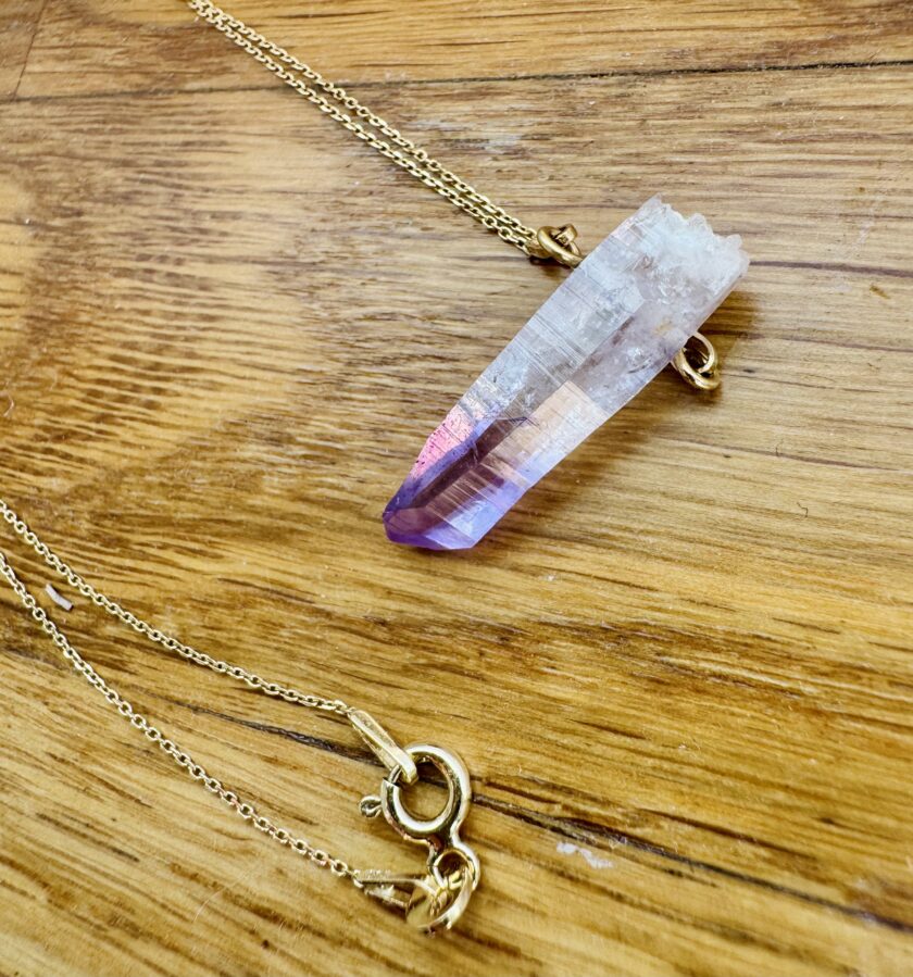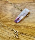 Naszyjnik z przepięknie wybarwionym kryształem Ametystu z Vera Cruz w Meksyku oprawiony w 14 karatowe złoto próby 585. Kryształ jest w formie naturalnej, nieszlifowanej takiej jaką kochamy najbardziej. Ametysty z tej lokalizacji są bardzo cenione przez Kolekcjonerów ze względu na charakterystyczny kształt, wybarwienie i unikatowość.