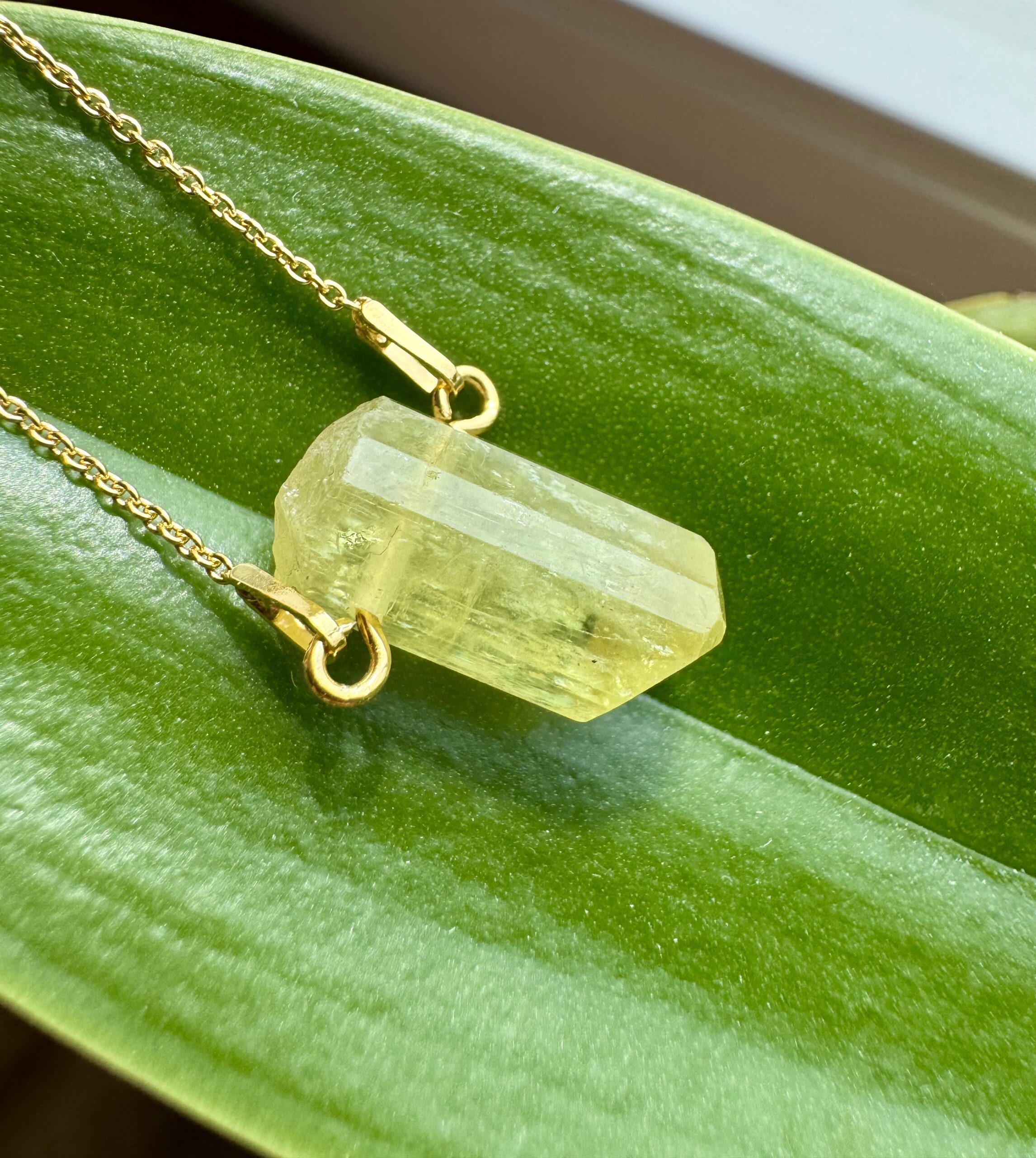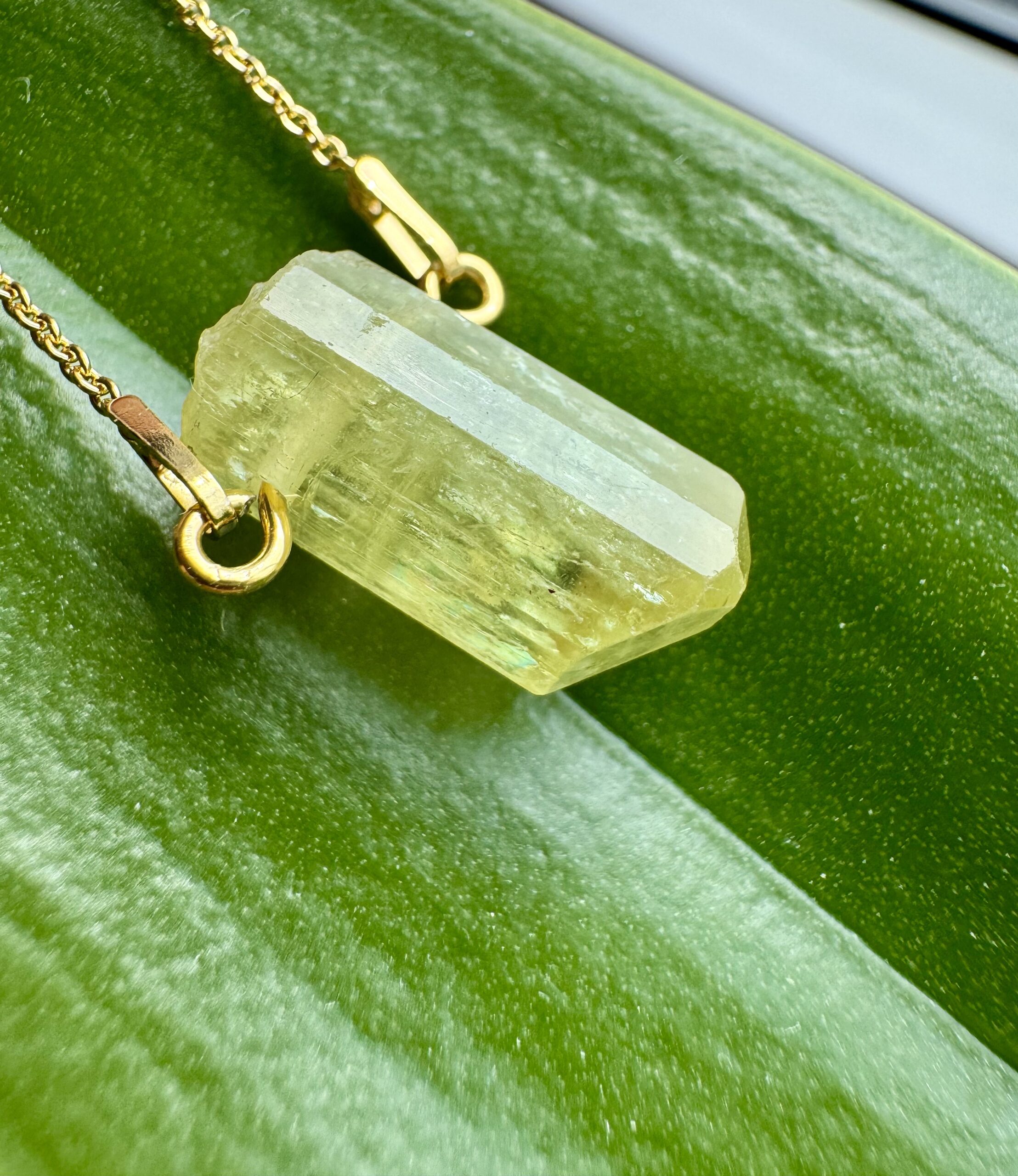 Naszyjnik z naturalnym kryształem Apatytu z Maroka – unikatowy, ręcznie wykonany egzemplarz.