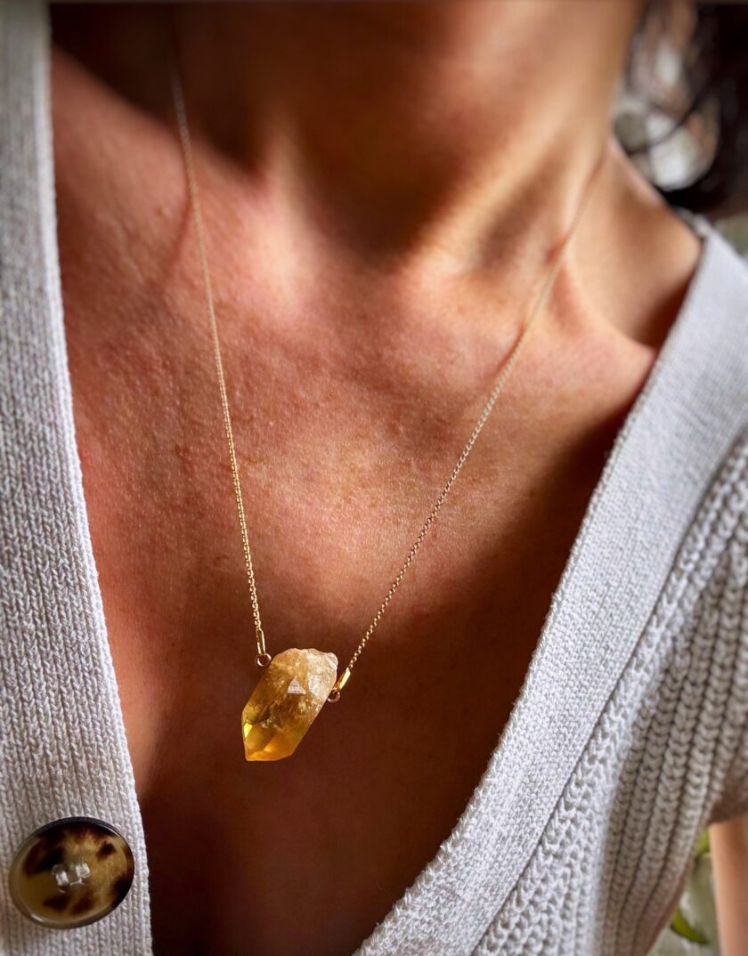 Naszyjnik z naturalnym Cytrynem z Kongo. Nie jest to grzany ametyst, ale prawdziwy, nienagrzewany Cytryn – kamień o słonecznej energii i wyjątkowej barwie.