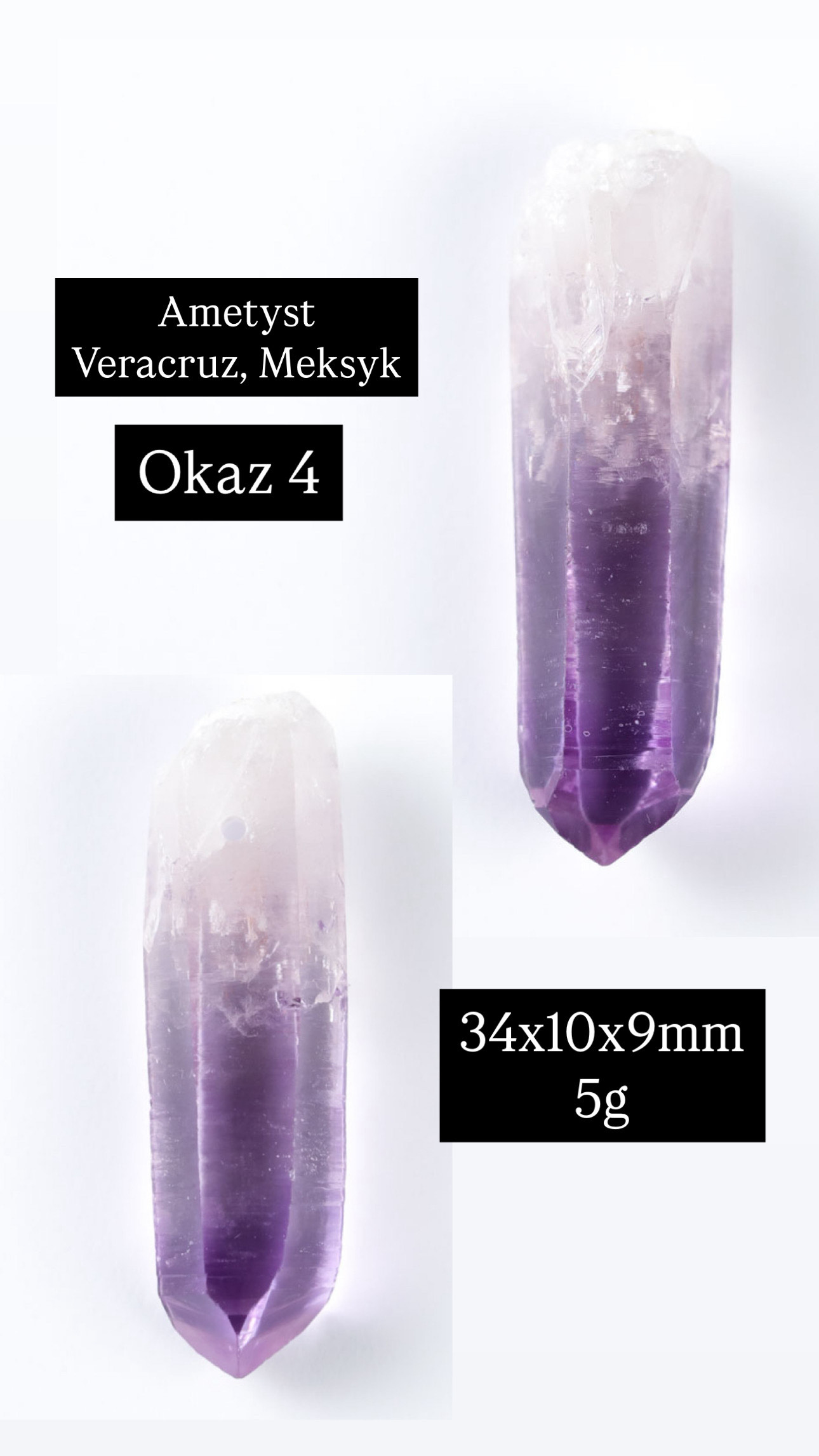 Wymiary kryształu: 34x10x9mm, Waga: 5g