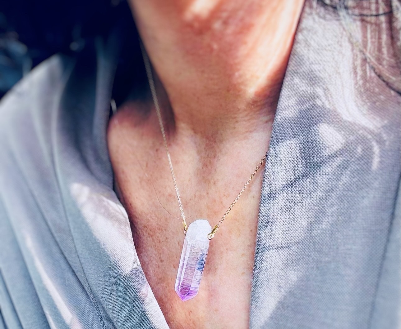 Poznaj nasz nowy Naszyjnik z dużym Ametystem z Veracruz. Wyjątkowy naszyjnik wykonany ręcznie z rzadkiego, dużego, kolekcjonerskiego okazu Ametystu pochodzącego z Veracruz – regionu znanego na całym świecie z niezwykle przejrzystych, jasnoliliowych kryształów o wysokich właściwościach energetycznych.