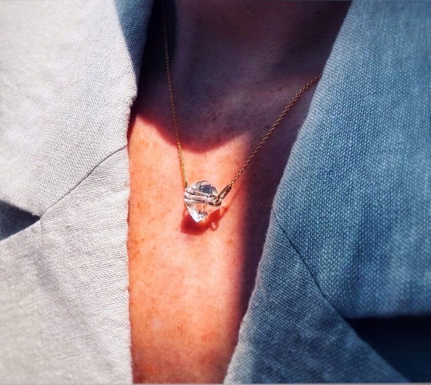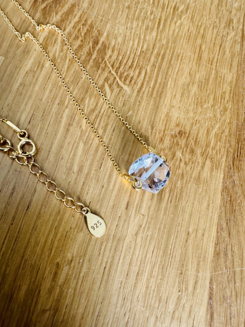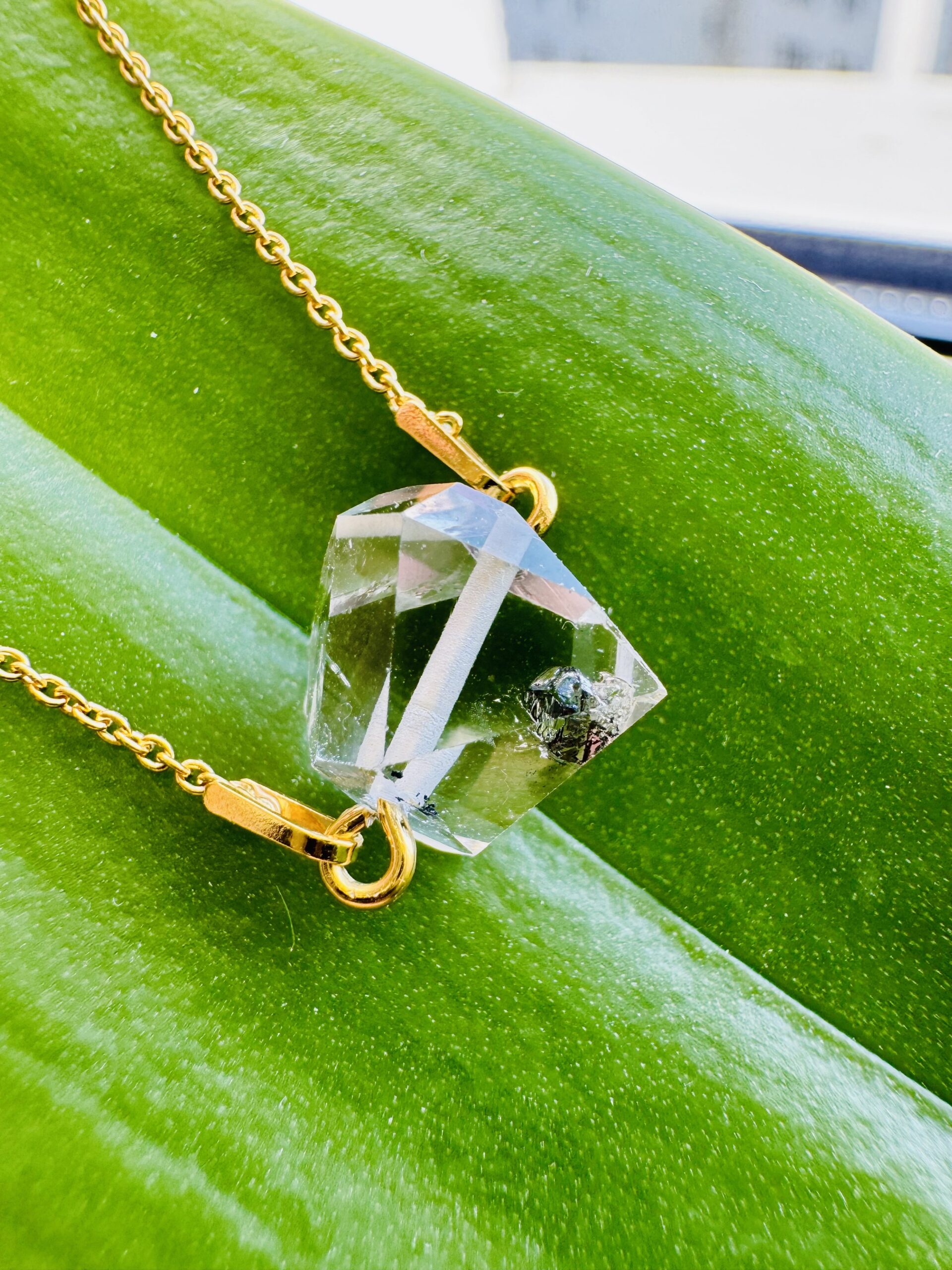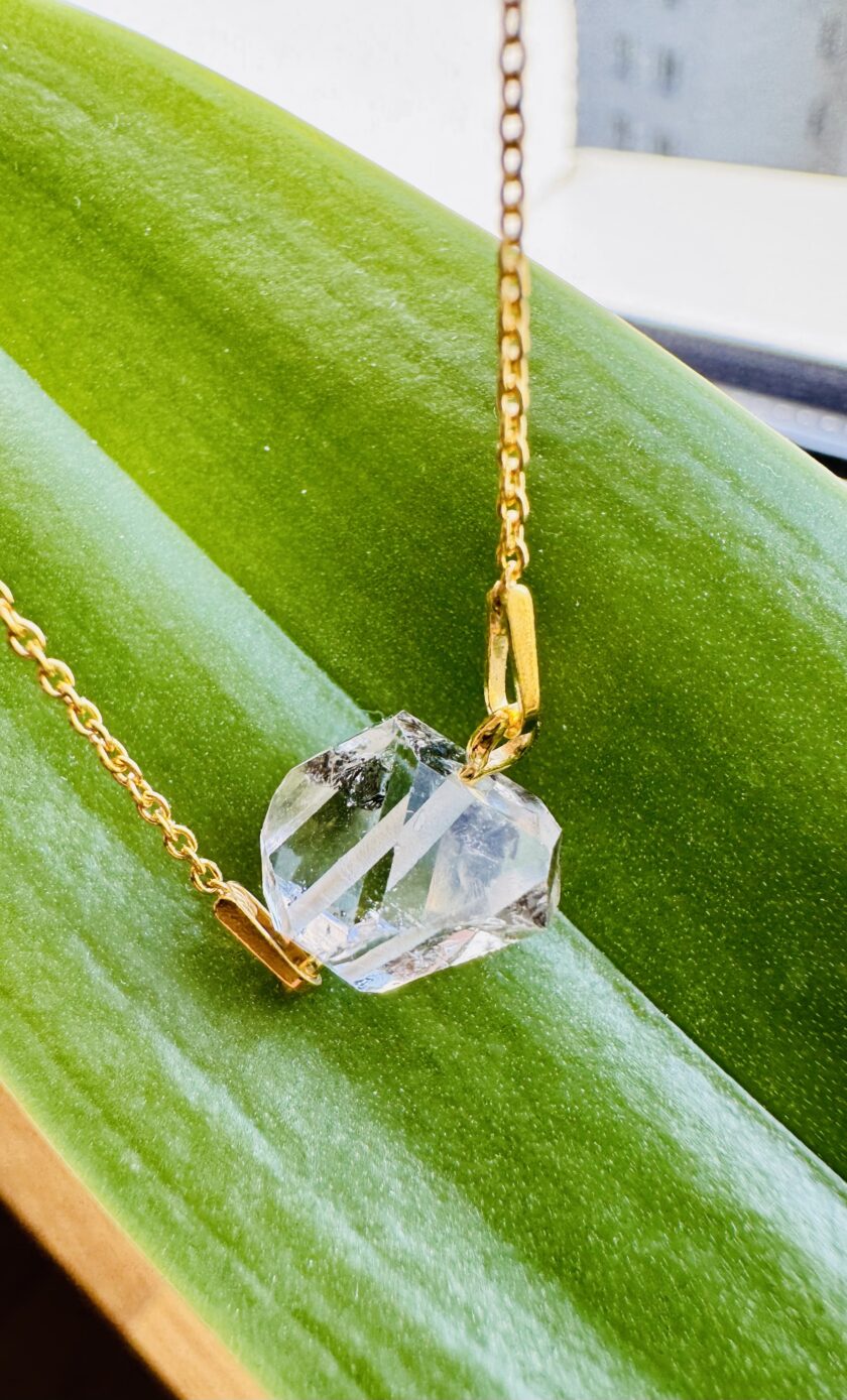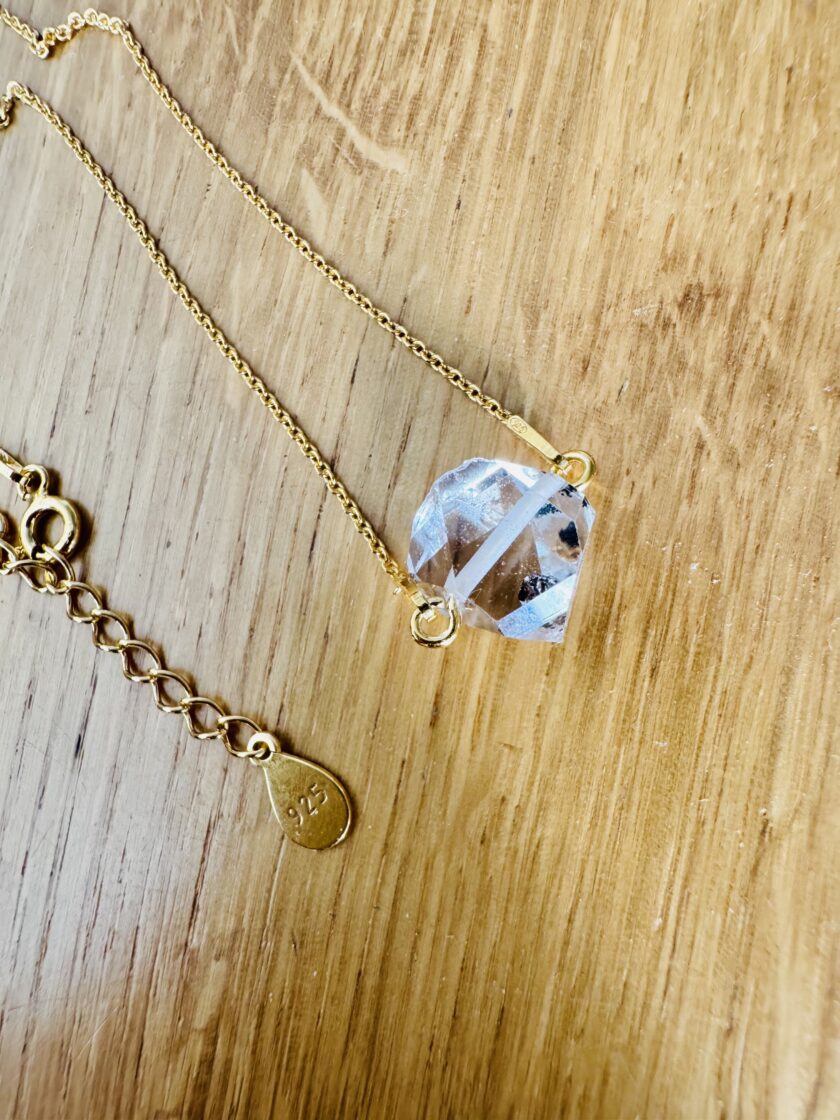 naszyjnik z kryształem, Herkimer Diamond, kryształ Herkimer, naszyjnik z kamieniem naturalnym, naszyjnik z surowym kryształem, biżuteria z kryształem z USA, pozłacany naszyjnik, srebrny naszyjnik pozłacany złotem, biżuteria talizman, naszyjnik energetyczny, naturalna biżuteria handmade, prezent dla niej z kryształem, biżuteria z duszą, kamienie mocy, naszyjnik z Herkimer Diamond, biżuteria na prezent, kryształ wspierający intuicję