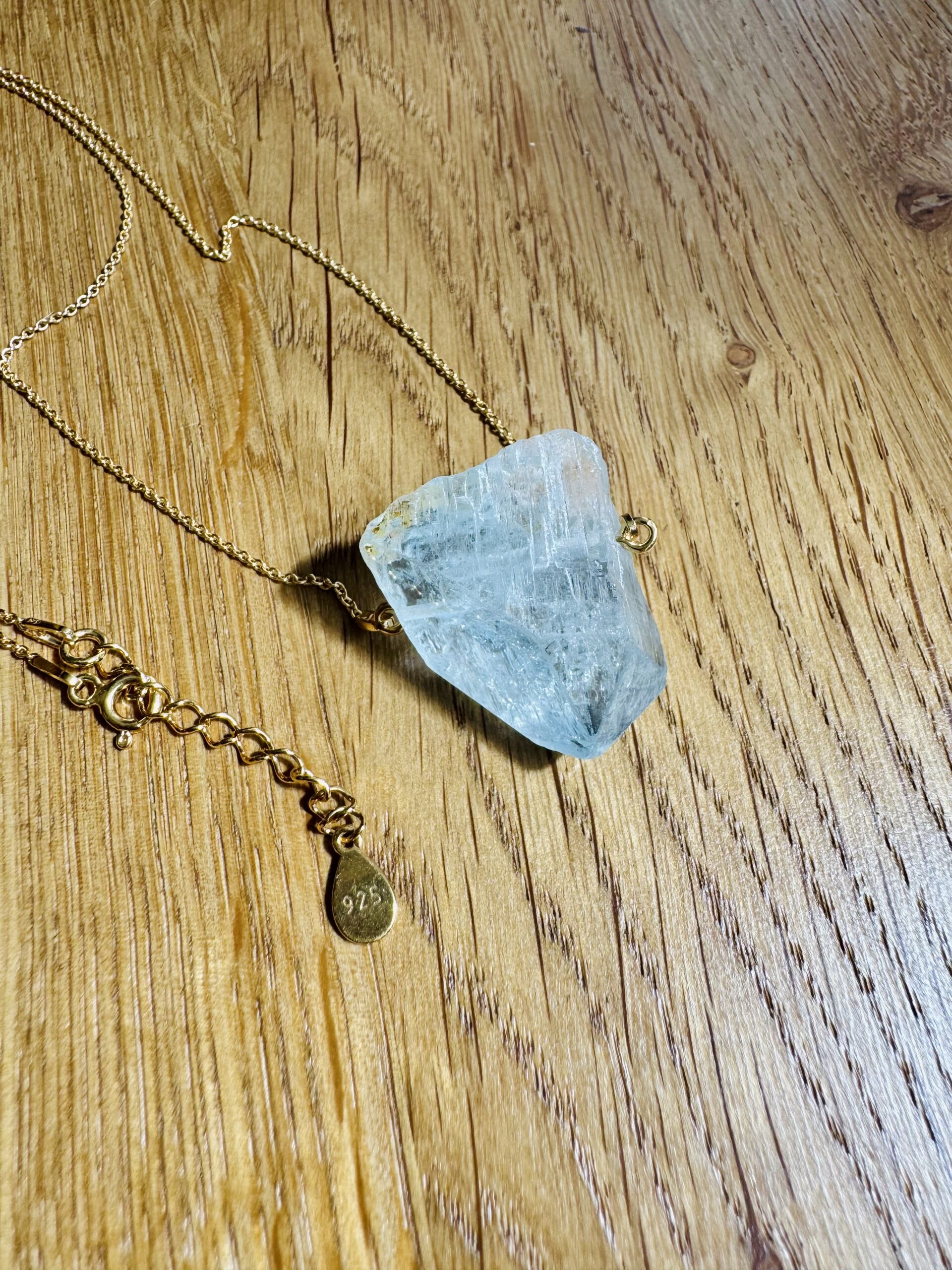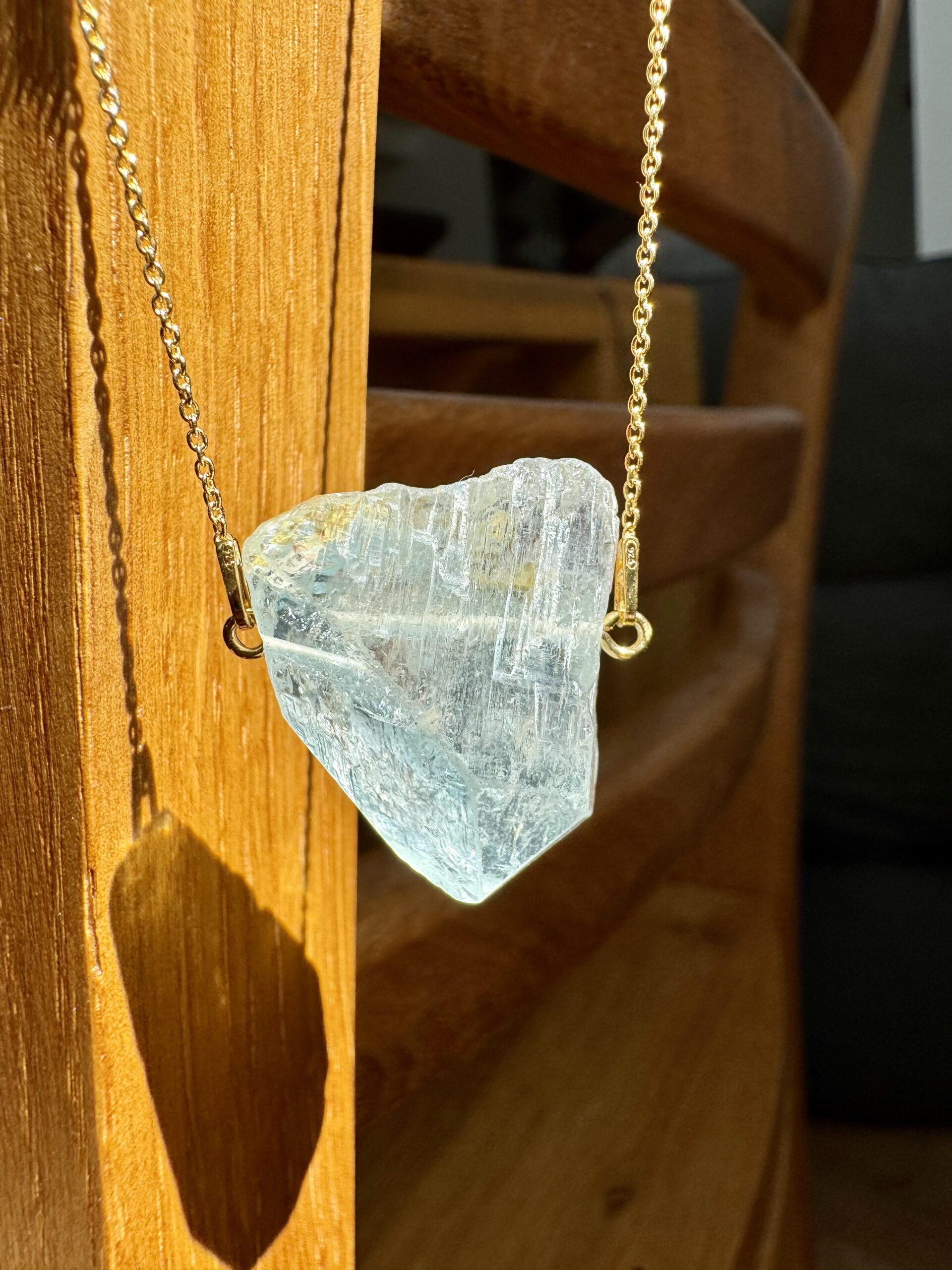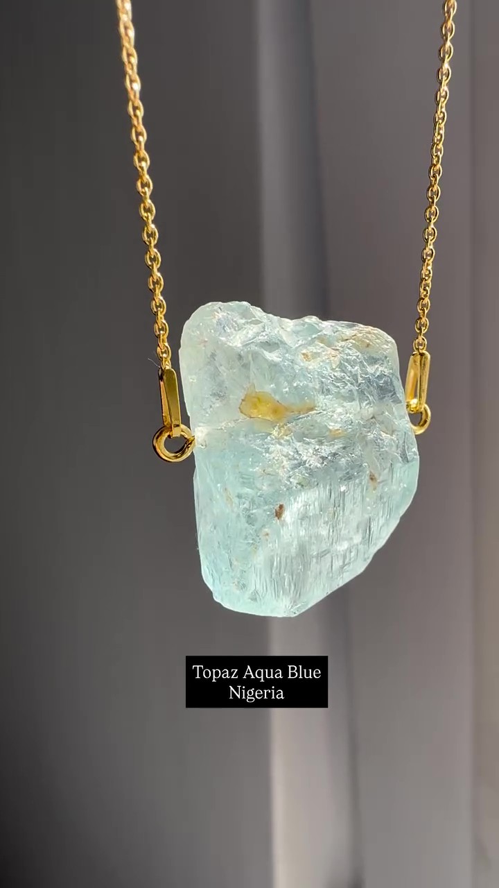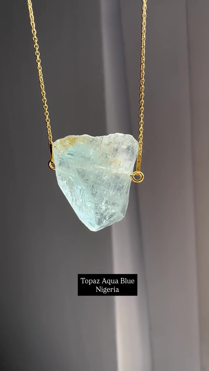 naturalny topaz, topaz z Nigerii, naszyjnik z topazem, biżuteria z naturalnych kryształów, luksusowa biżuteria, ręcznie robiona biżuteria, topaz aqua blue, naszyjnik złoty, biżuteria handmade Polska, unikalny kryształ, topaz nieszlifowany