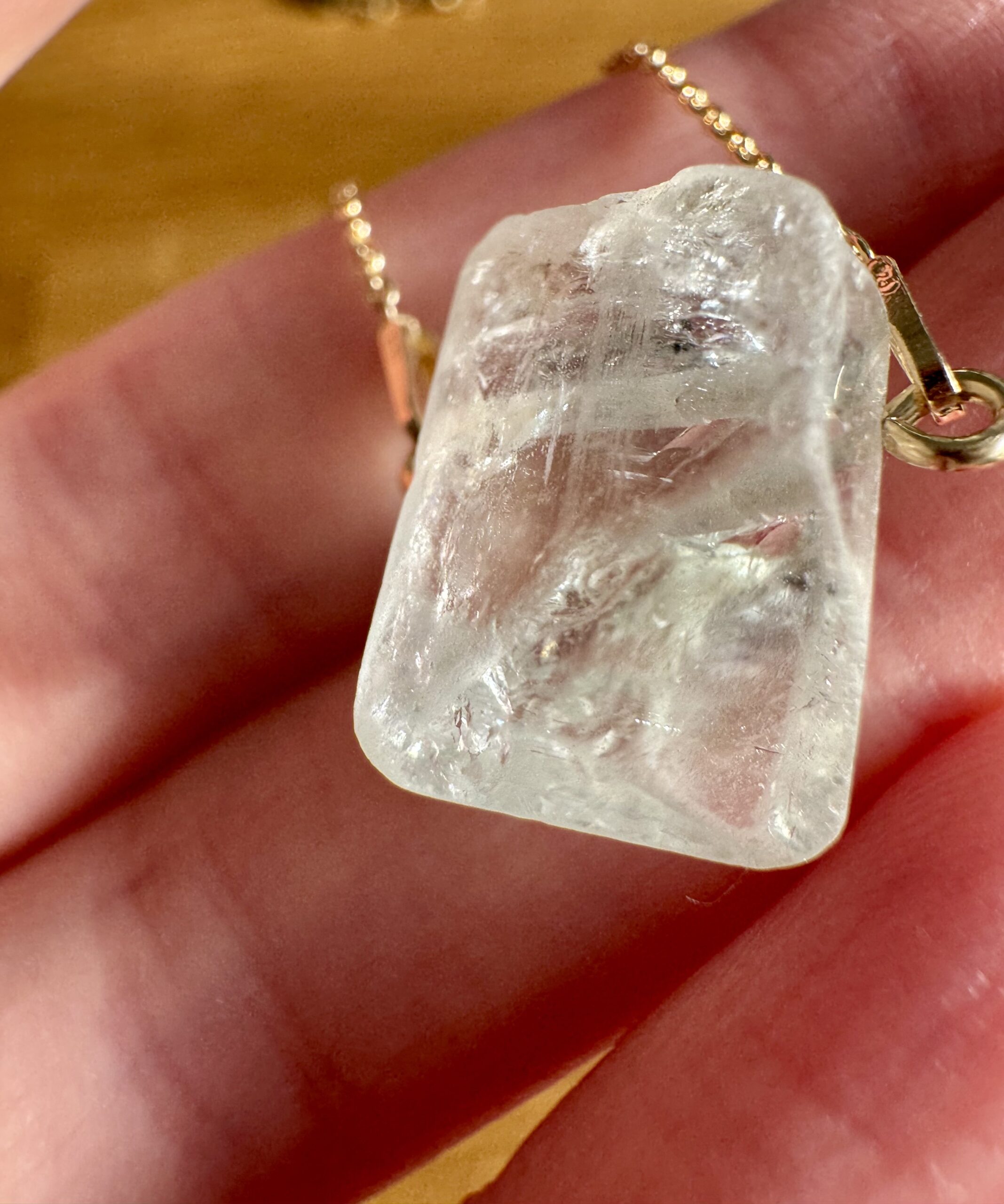 Ten topaz to nie tylko biżuteria – to energia czystości, odwagi i klarowności, zamknięta w nieoszlifowanej bryle natury.