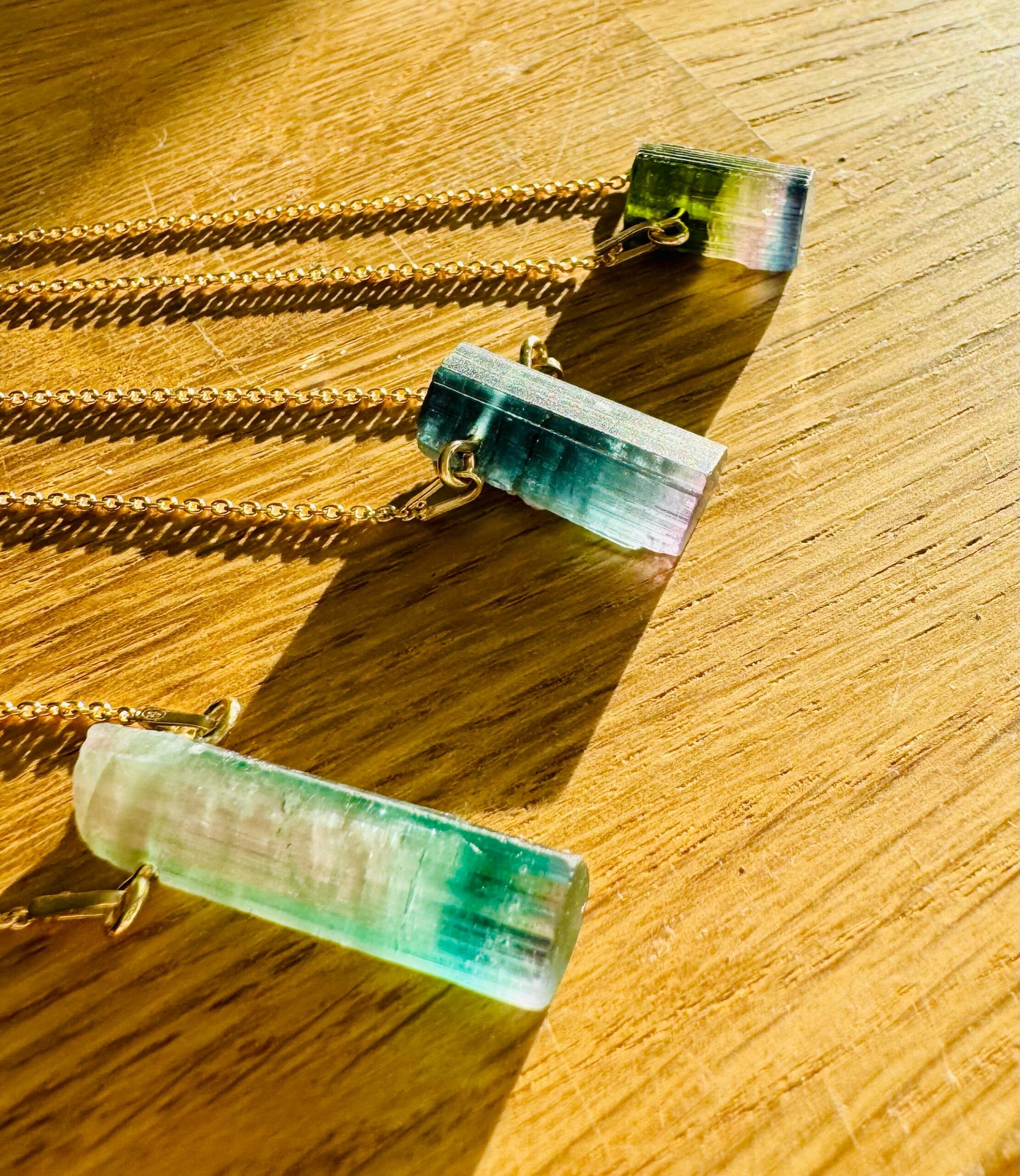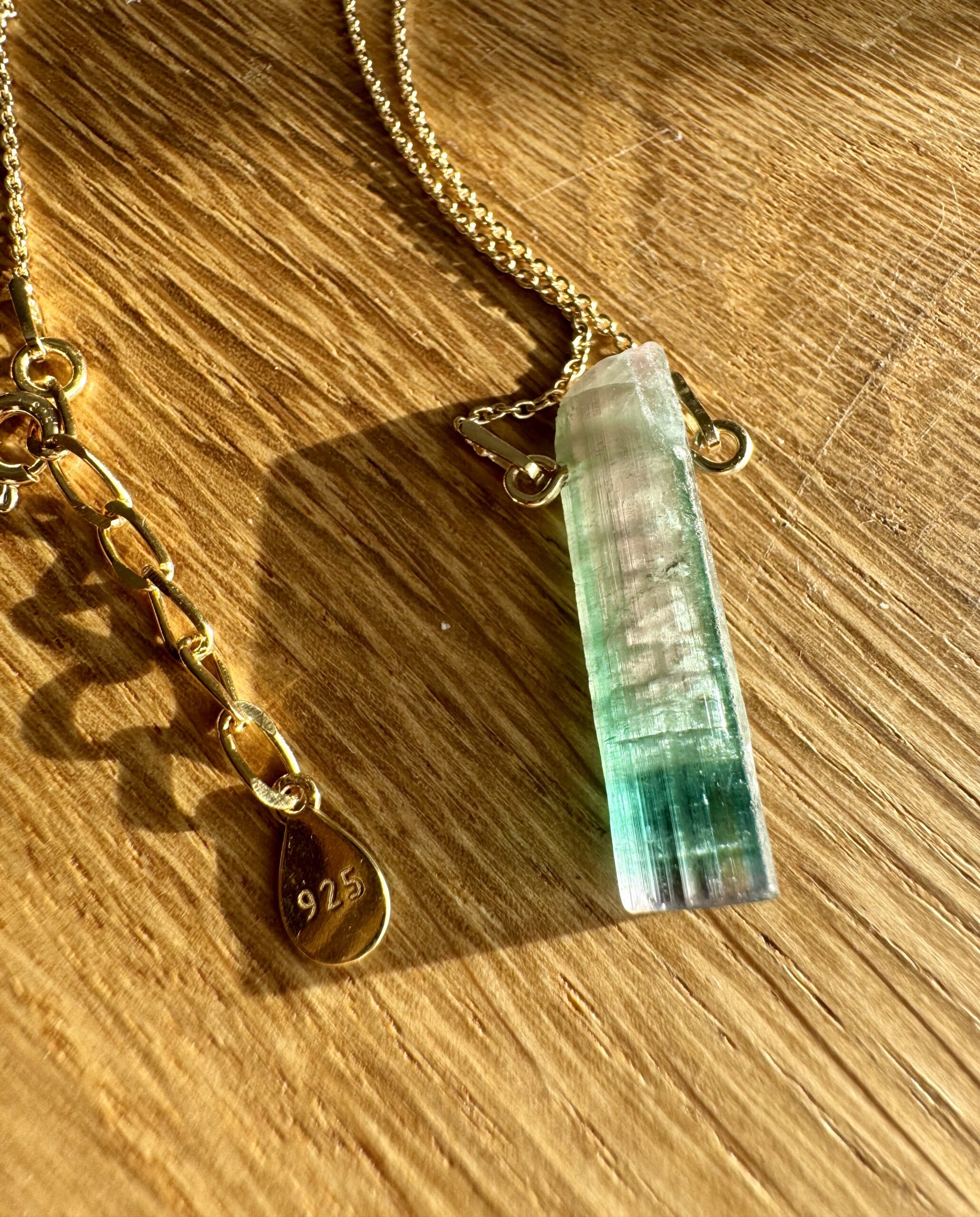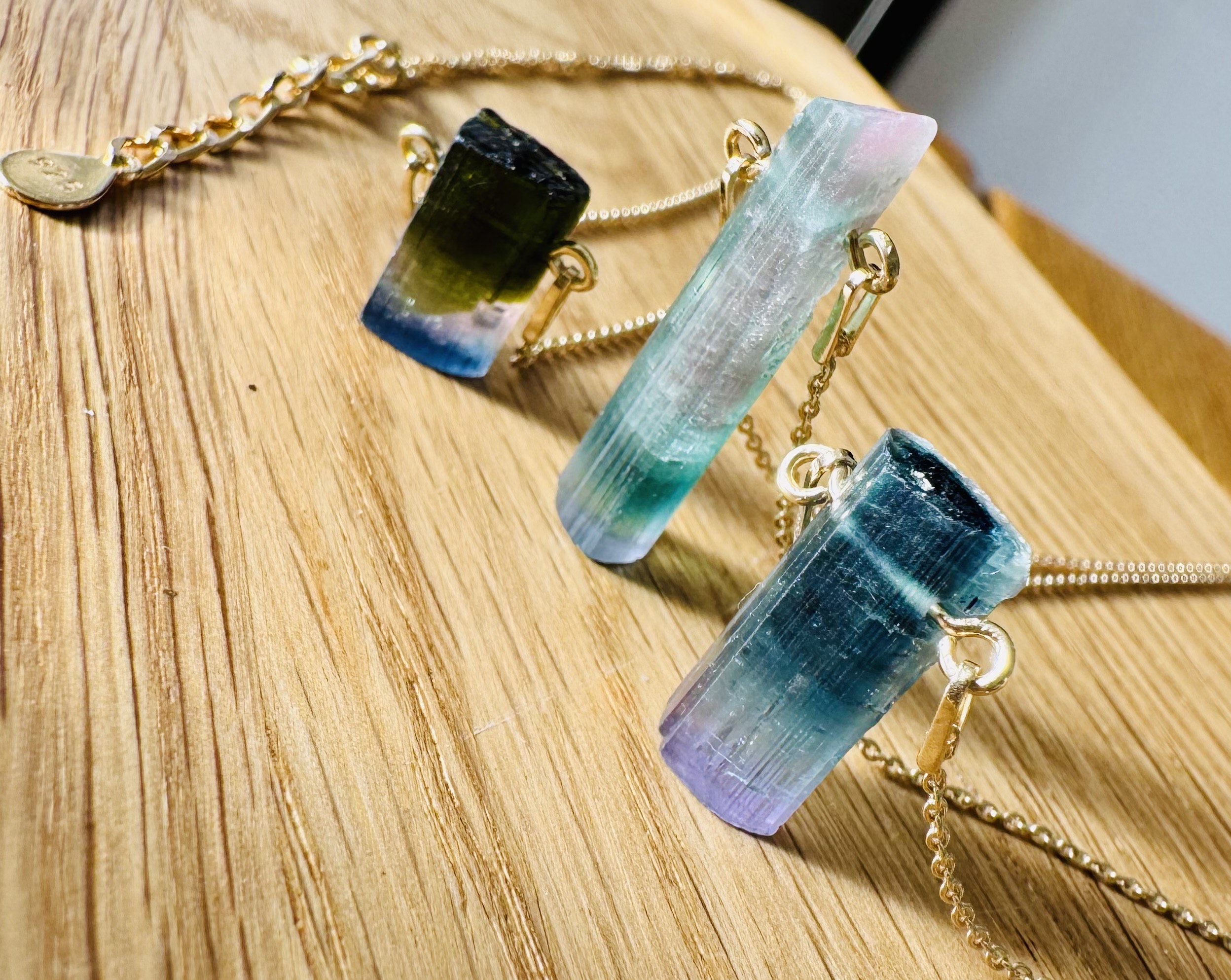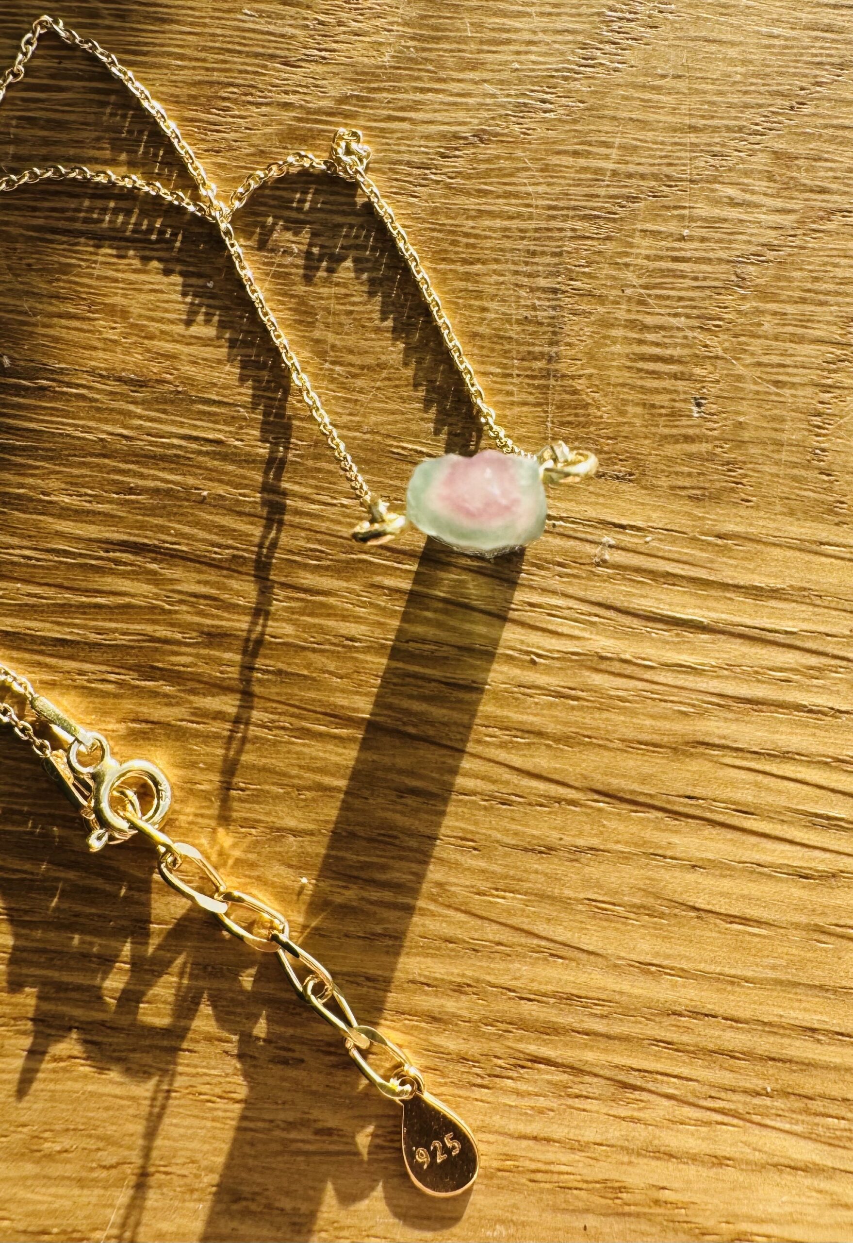 turmalin watermelon, naturalny turmalin , trójstrefowy turmalin, naszyjnik z turmalinem, kamienie kolekcjonerskie, biżuteria z kamieni naturalnych, turmalin kolekcjonerski, ekskluzywny turmalin, turmalin gradient kolorów, srebrny naszyjnik ze złoceniem 750, pozłacany naszyjnik z kryształem naturalnym