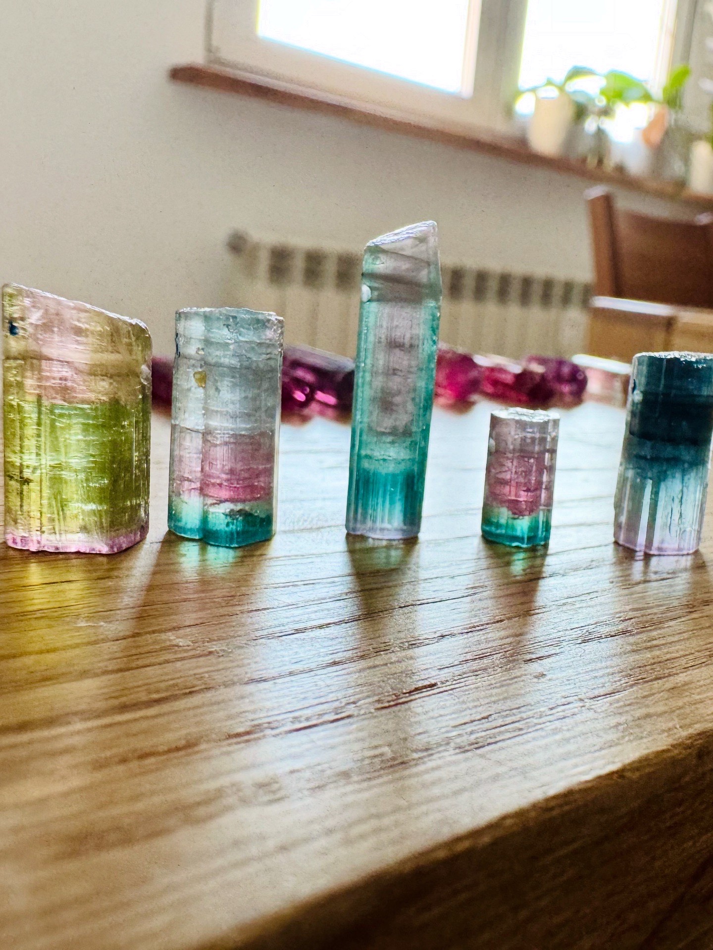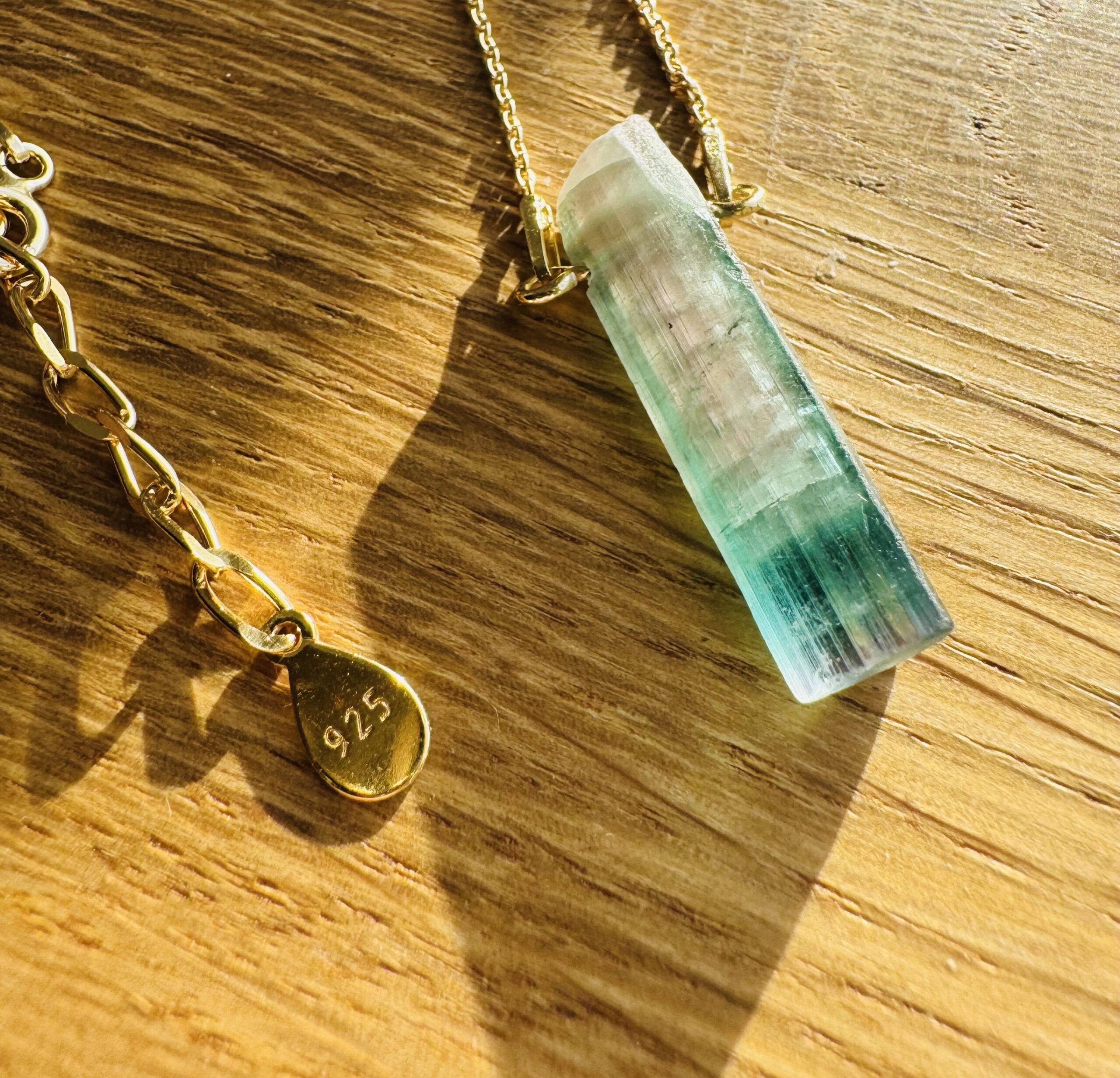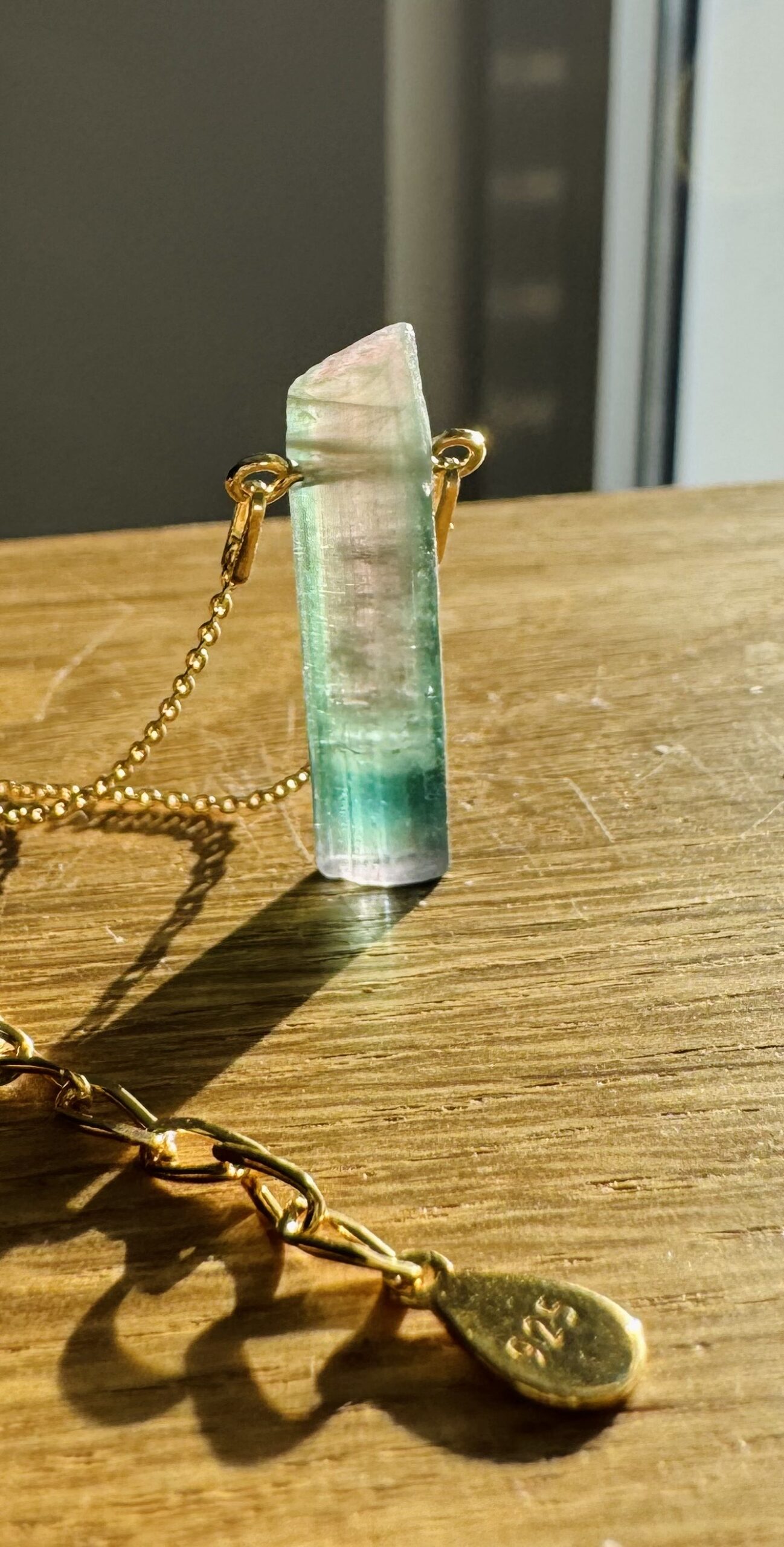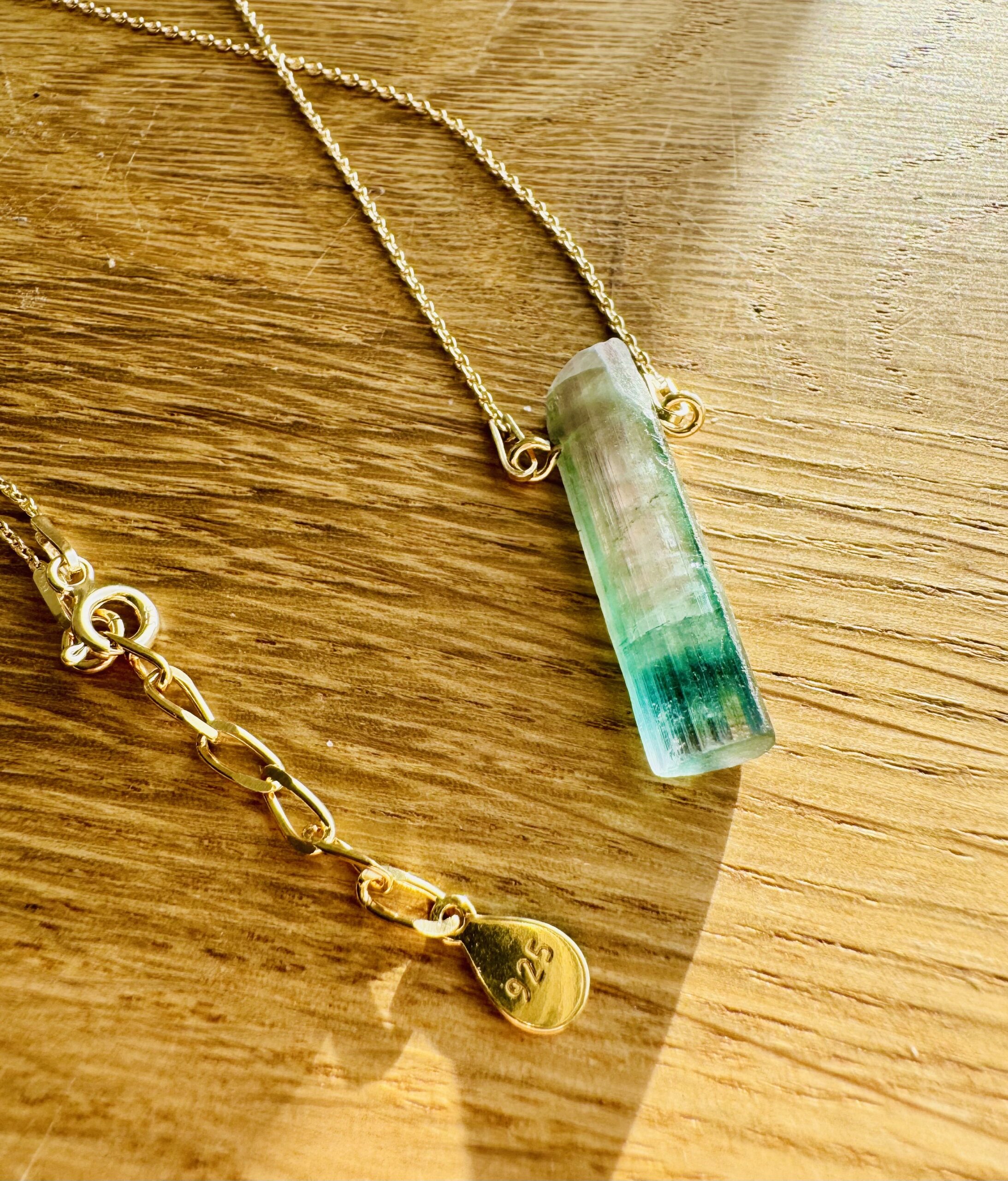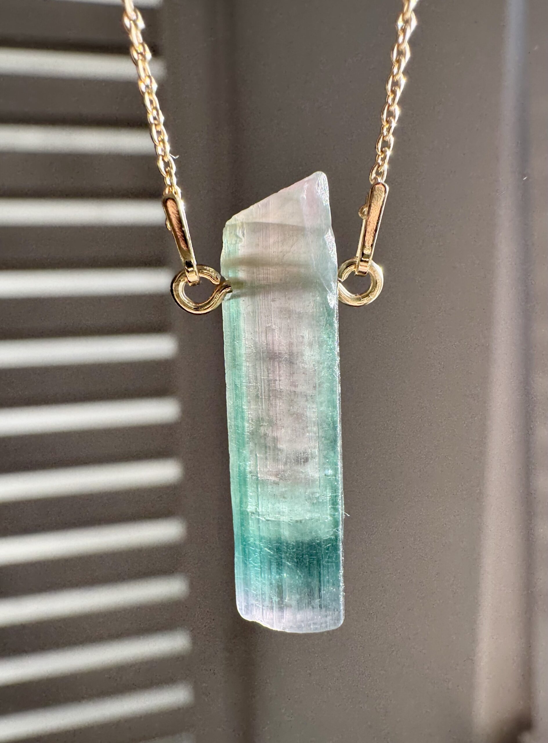 turmalin watermelon, naturalny turmalin , trójstrefowy turmalin, naszyjnik z turmalinem, kamienie kolekcjonerskie, biżuteria z kamieni naturalnych, turmalin kolekcjonerski, ekskluzywny turmalin, turmalin gradient kolorów, srebrny naszyjnik ze złoceniem 750, pozłacany naszyjnik z kryształem naturalnym