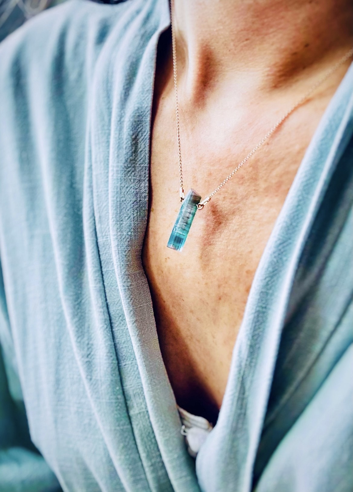Ten surowy kryształ to wynik milionów lat formowania w głębi ziemi. W jednym krysztale spotykają się delikatny róż i pastelowa zieleń — barwy przenikają się subtelnie, tworząc efekt akwareli, której nie da się powtórzyć. Jego rozmiar i naturalna forma dodają mu głębi i charakteru, a jednocześnie zachowują naturalną surowość i autentyczność. Ten naszyjnik to więcej niż biżuteria — to małe dzieło sztuki. Jeśli szukasz czegoś niepowtarzalnego, subtelnego a jednocześnie pełnego magii, ten kryształ spełni Twoje oczekiwania.