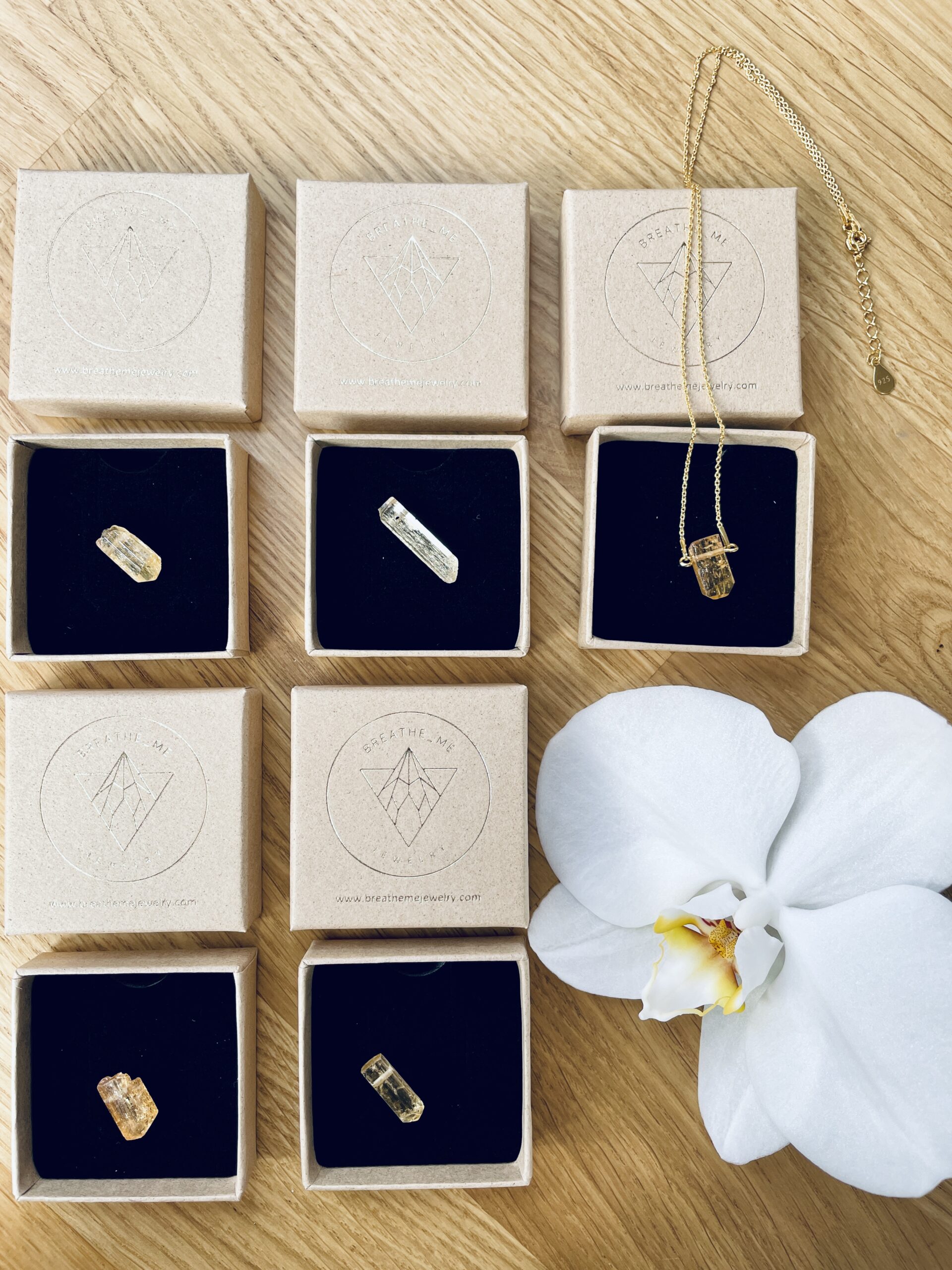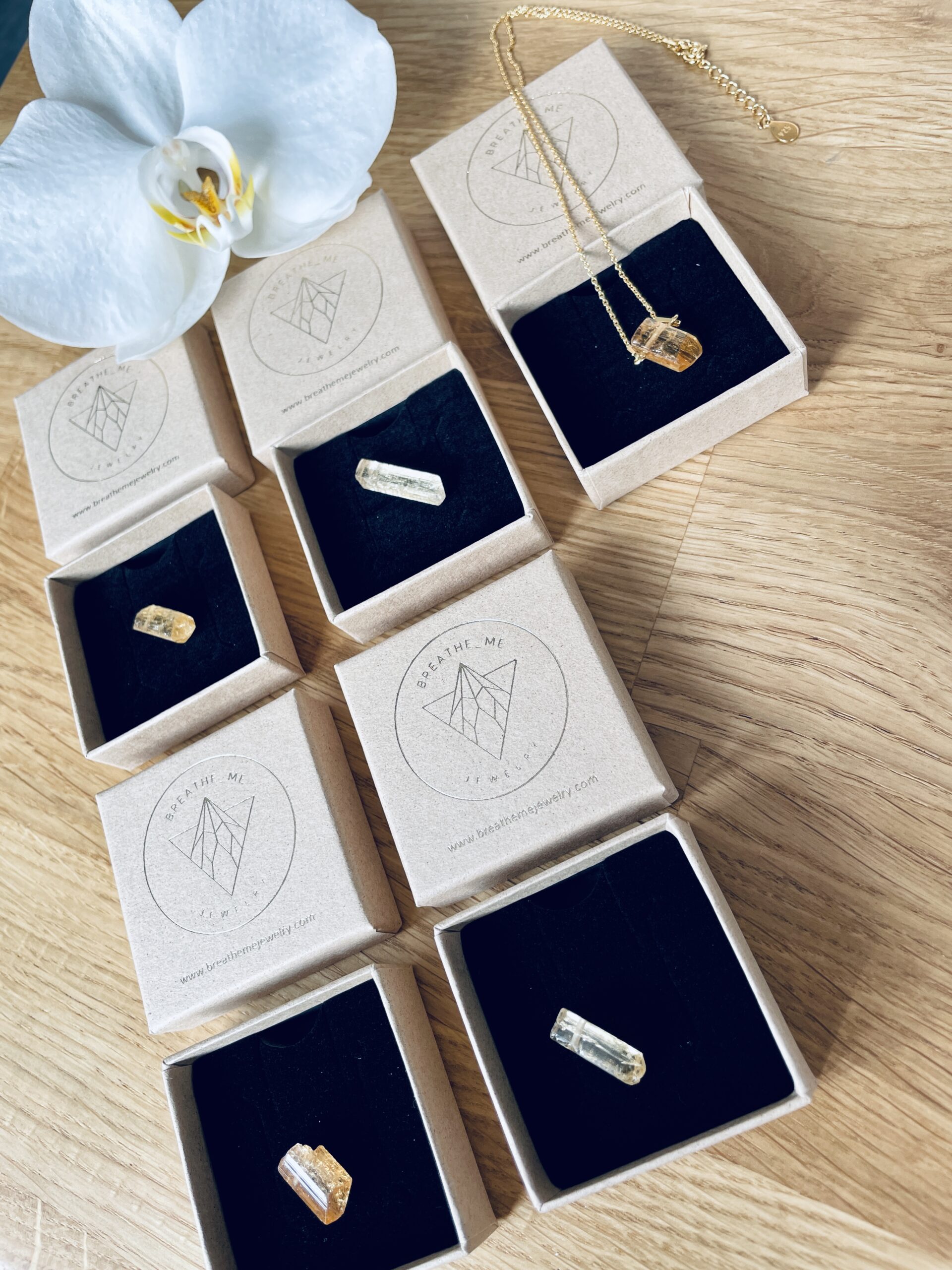 Naszyjnik pakujemy w ECO pudełeczko w stylu podróżniczym ze złotym logo – idealny pomysł na Prezent od Serca!