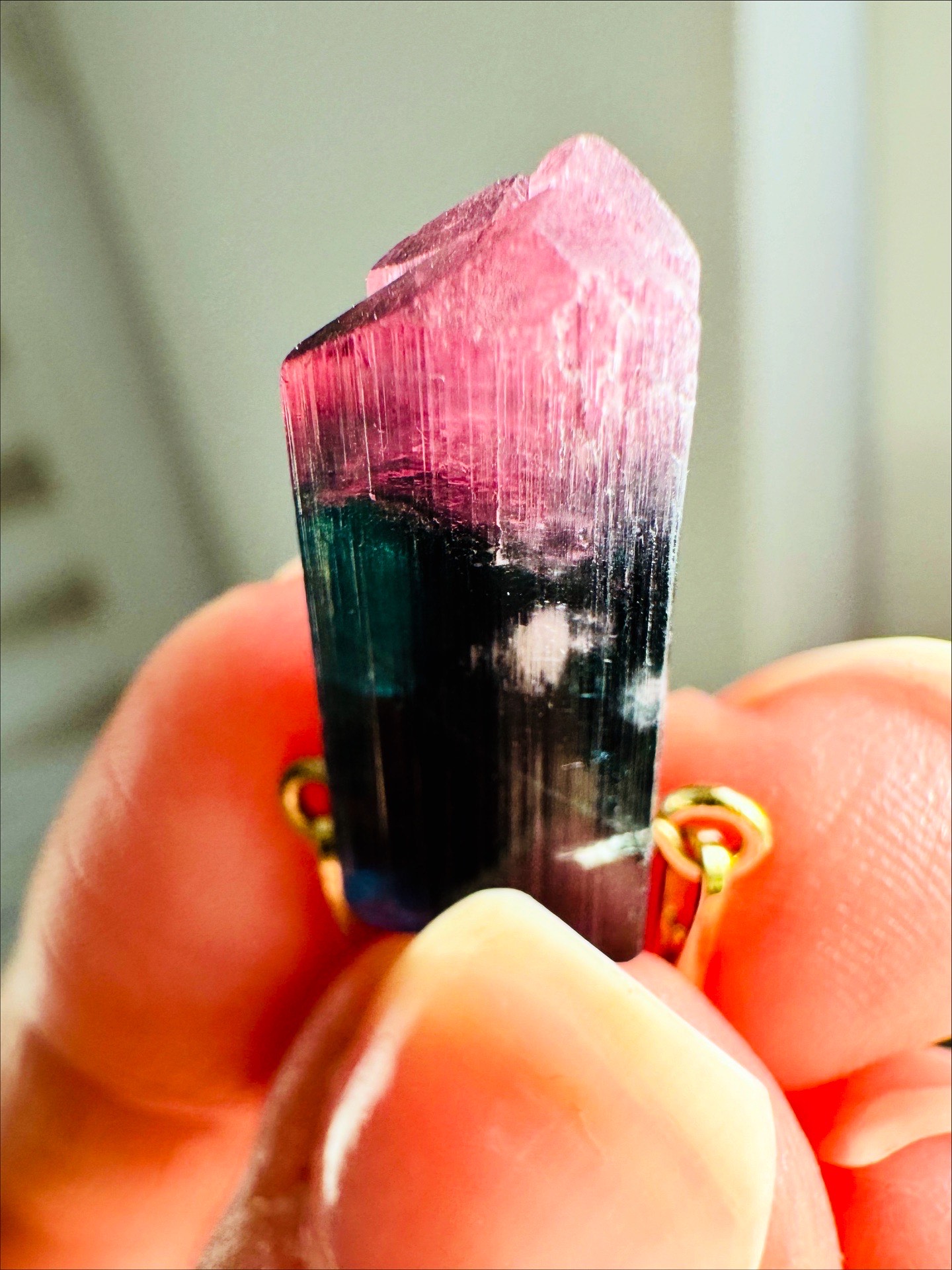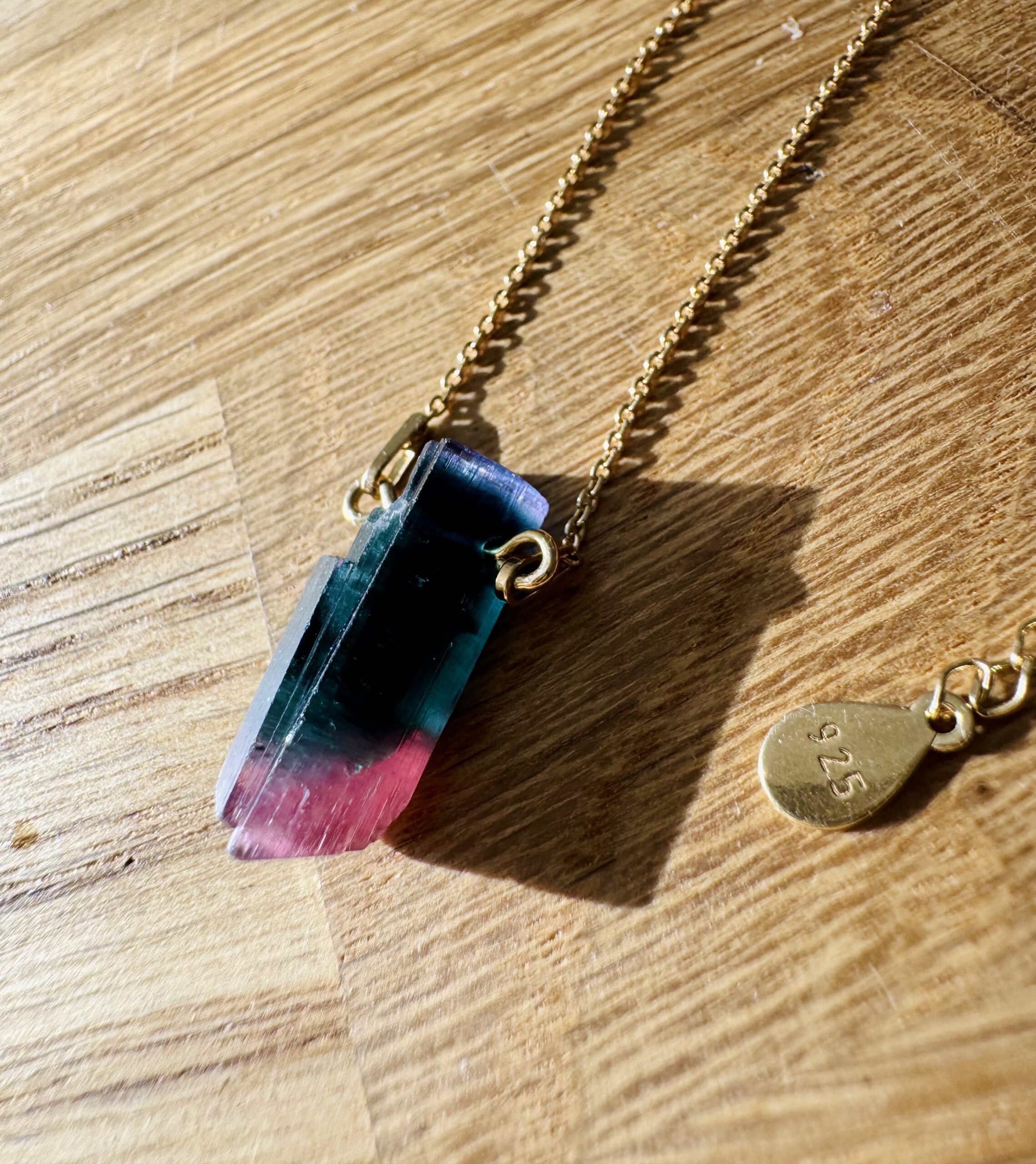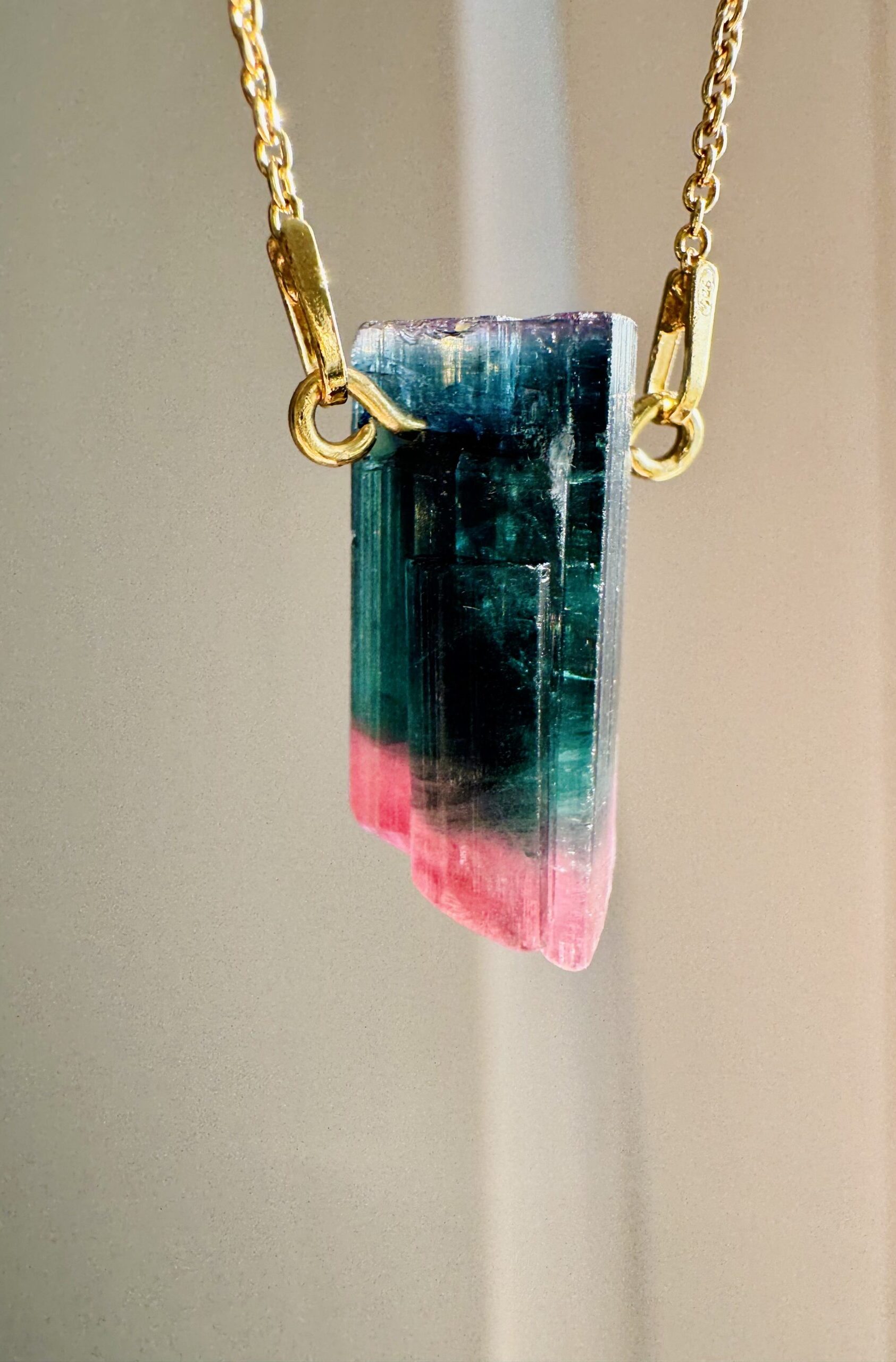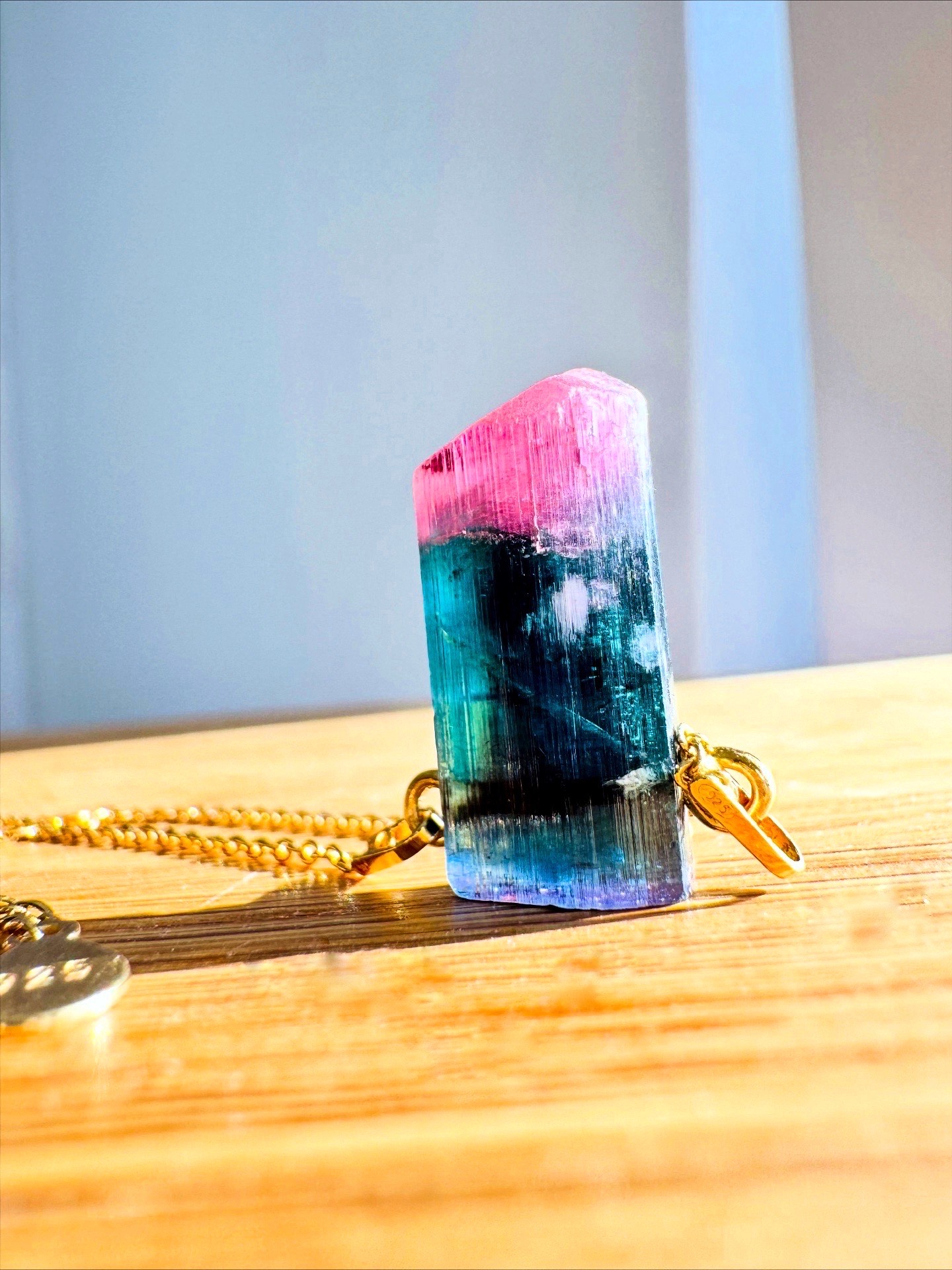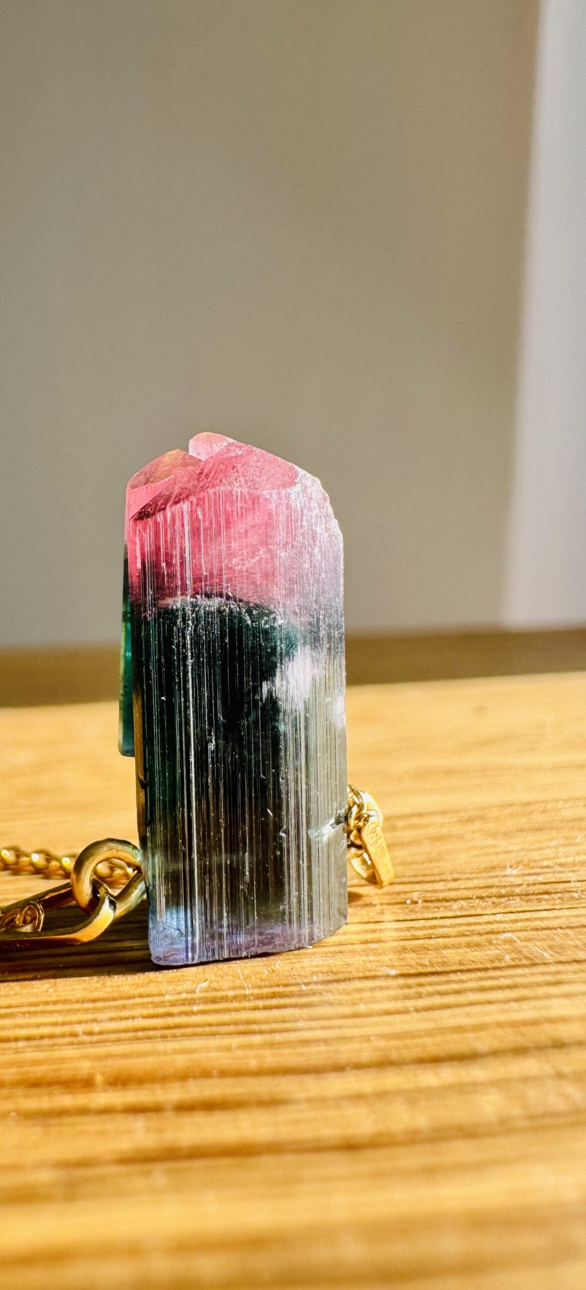 turmalin Paprok, trójkolorowy turmalin, Paprok Afghanistan, naszyjnik z turmalinem, kolekcjonerska biżuteria z kamieni naturalnych, handmade jewelry Poland, luxury gemstone necklace, natural tourmaline crystal, fine gemstone jewelry, unikatowa biżuteria z turmalinem