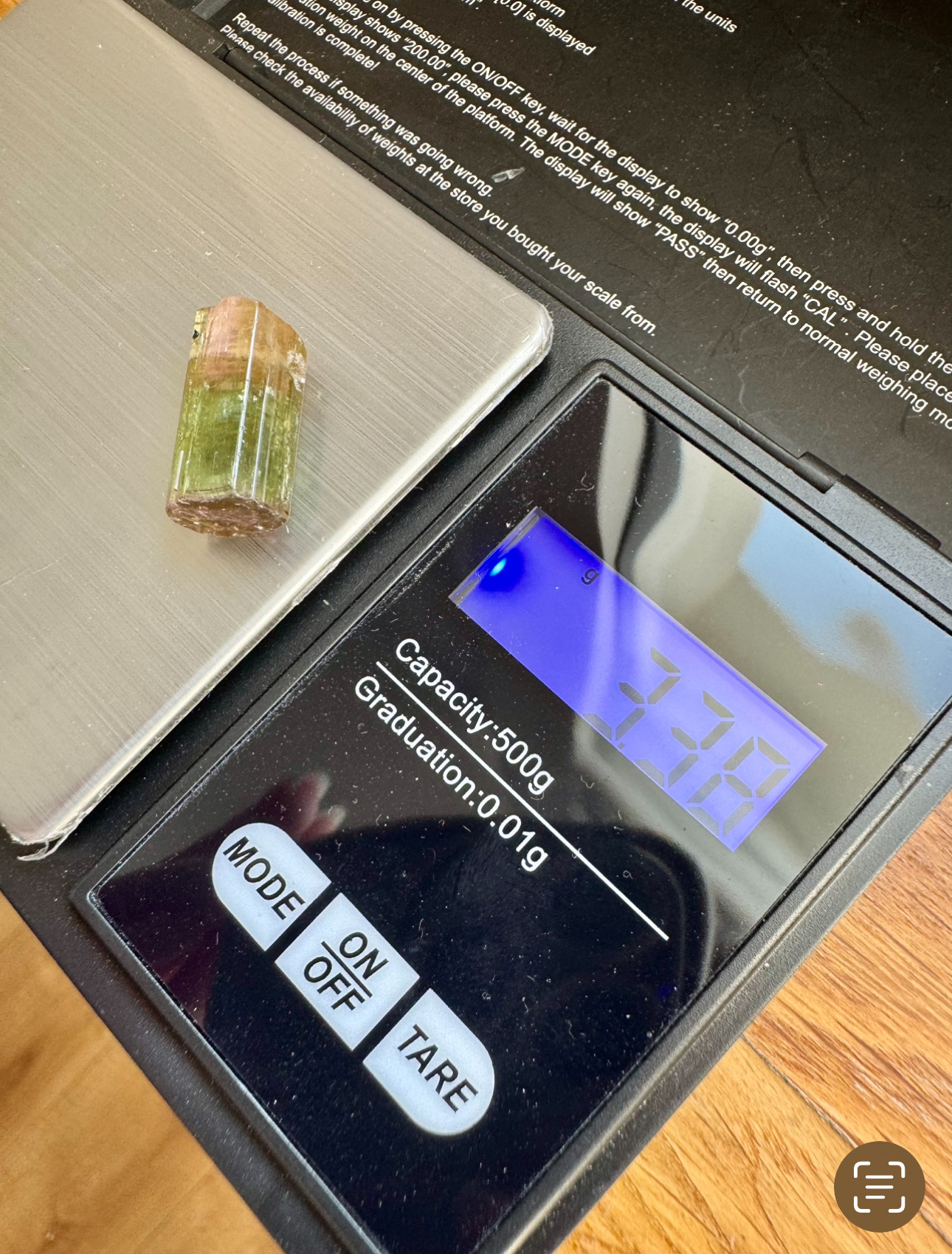 - Masa kryształu: 3,38 g
