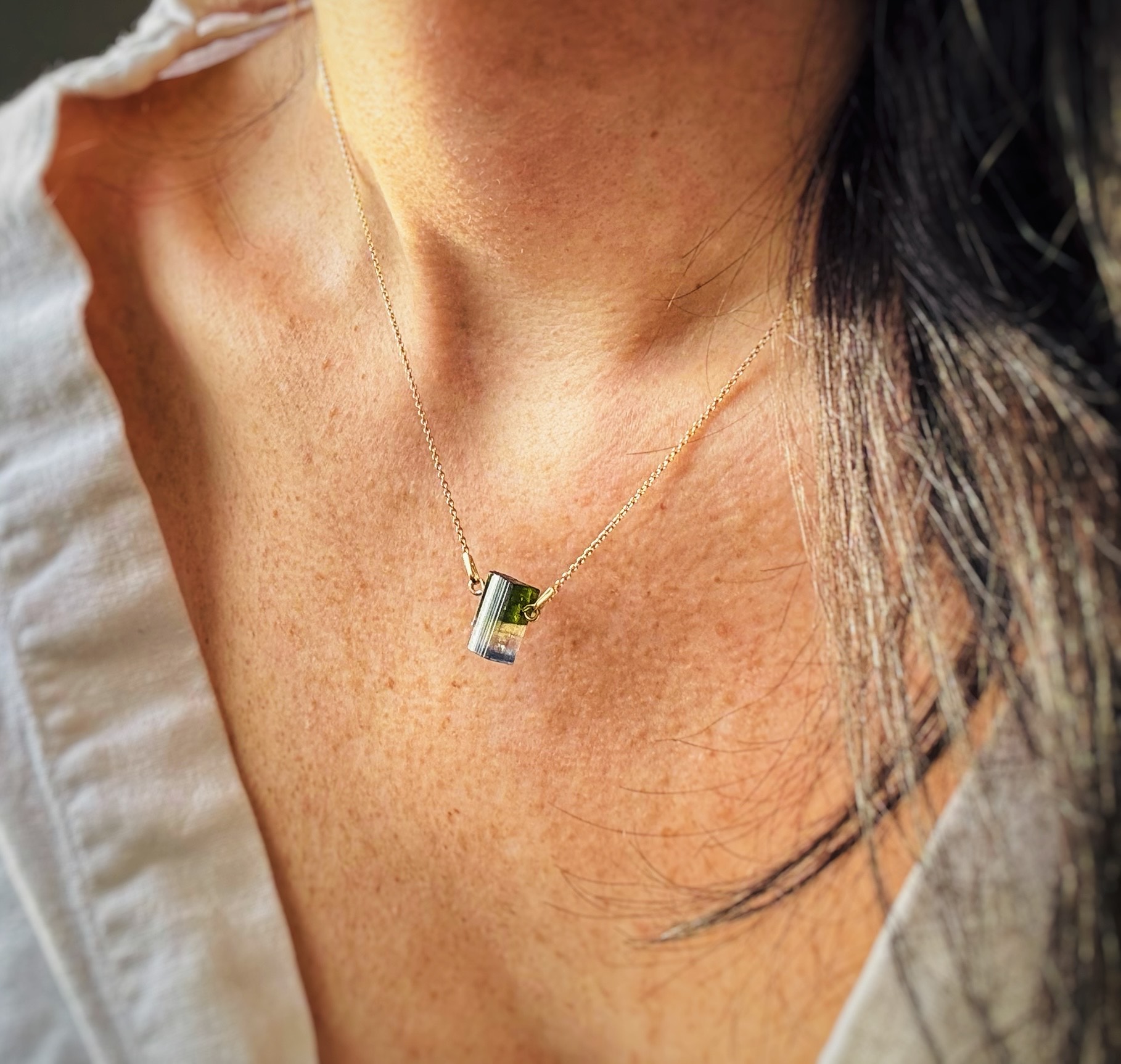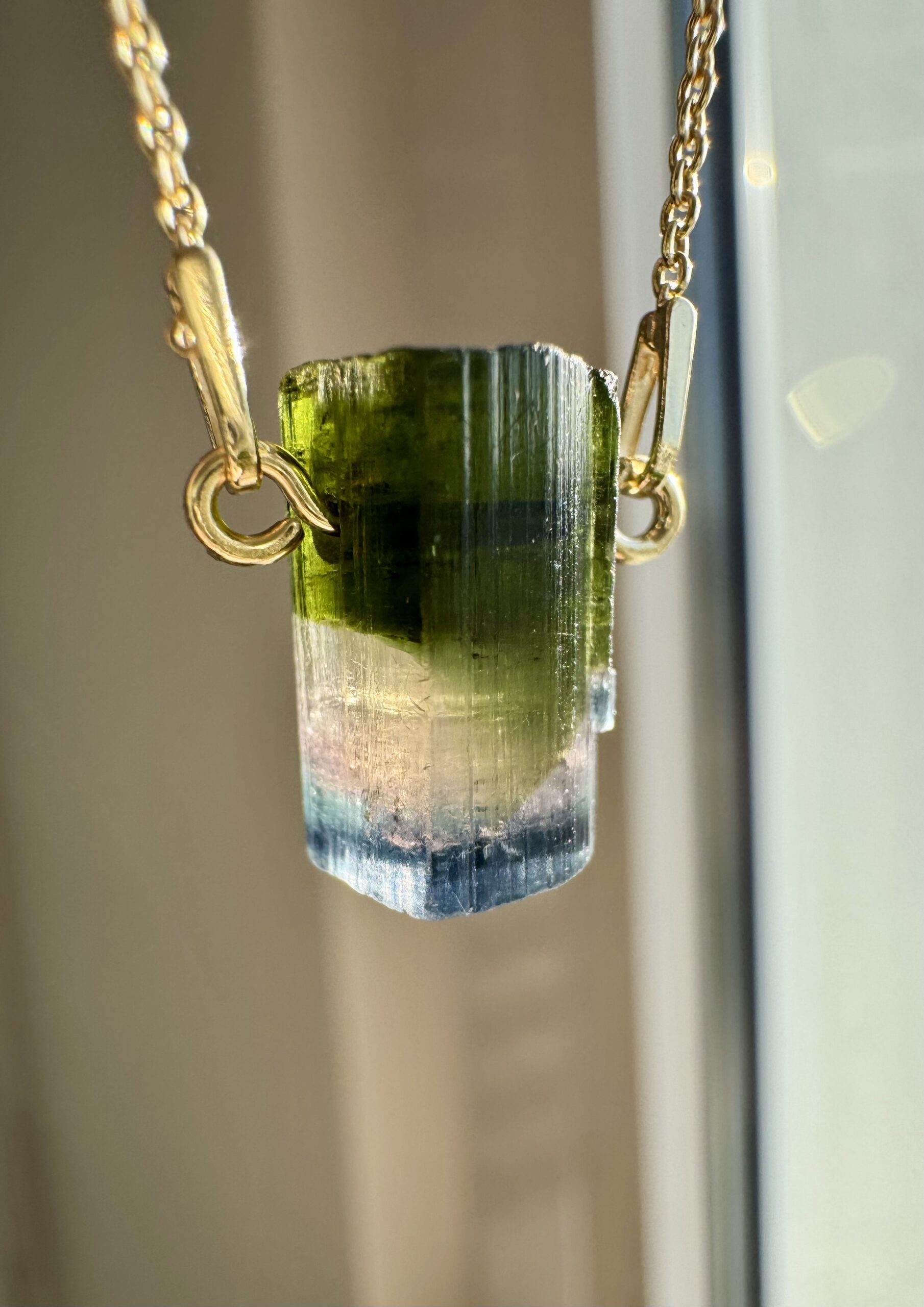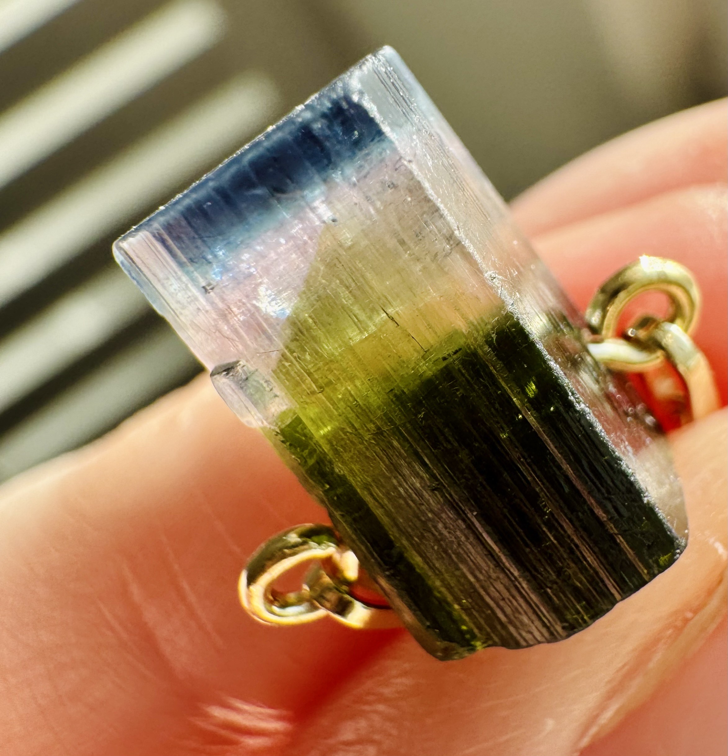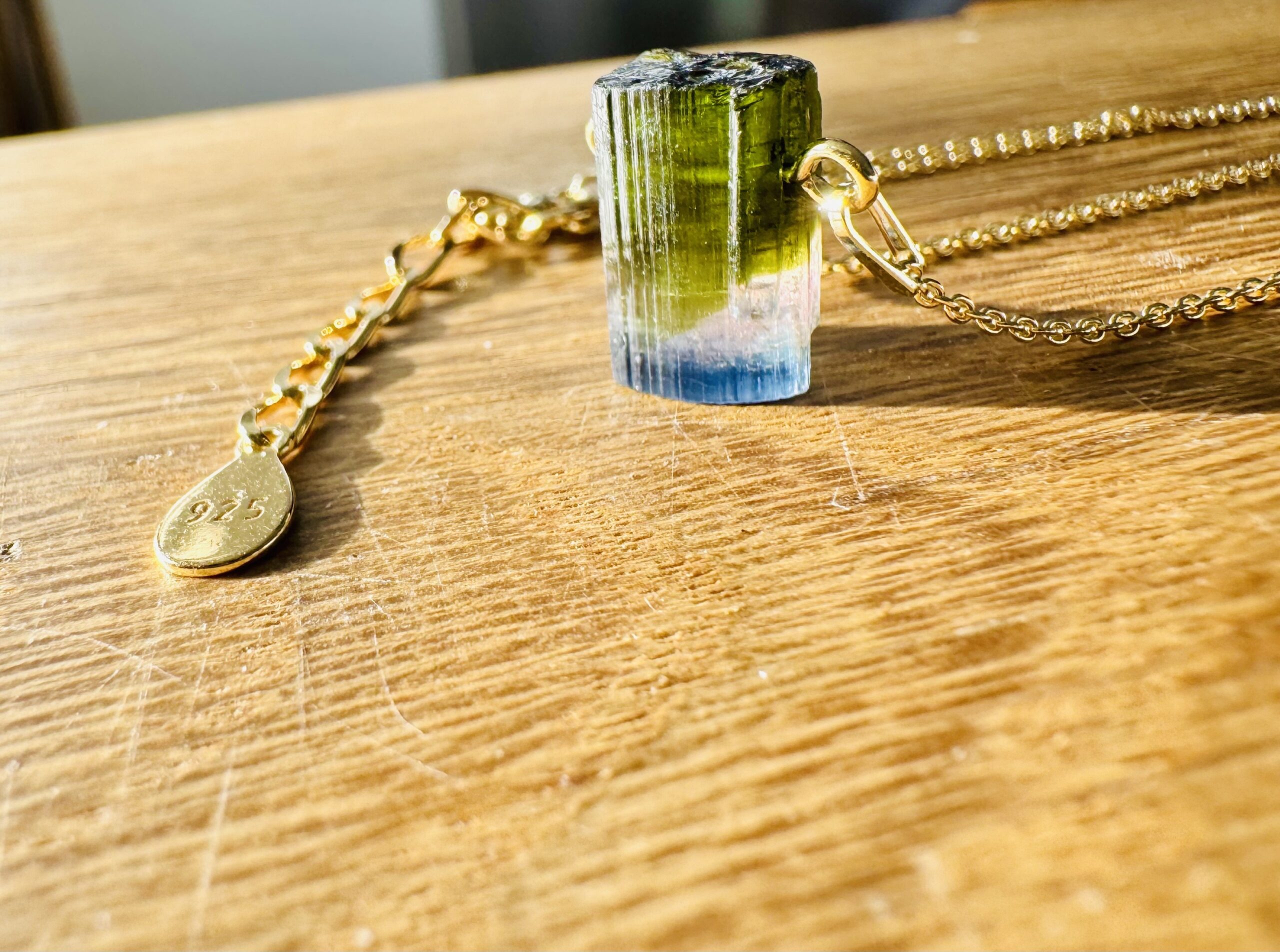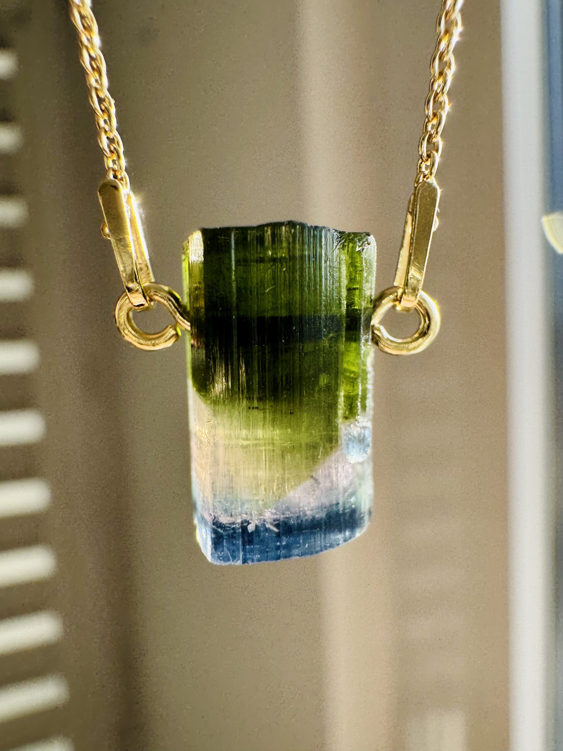 Naszyjnik Blue Cap Tourmaline – luksusowa biżuteria z naturalnym kryształem. Poznaj elegancję i rzadkość w najczystszej formie: surowy, naturalny kryształ Blue Cap Tourmaline, osadzony w starannie wykonanej oprawie ze srebra i 18K złota próby 750. To wyjątkowy, kolekcjonerski Okaz z naszej kolekcji Premium – limitowany, niepowtarzalny. Doskonały dla osób, które cenią naturalne kryształy, luksus i ręczną pracę.
