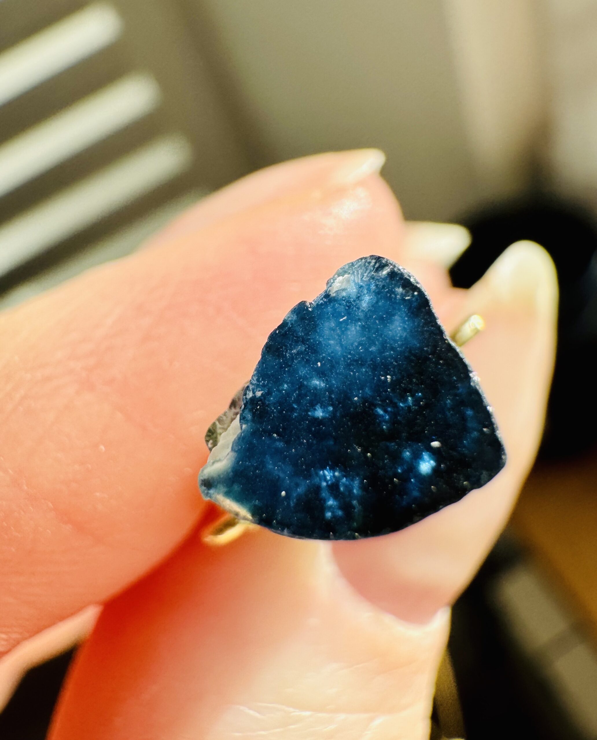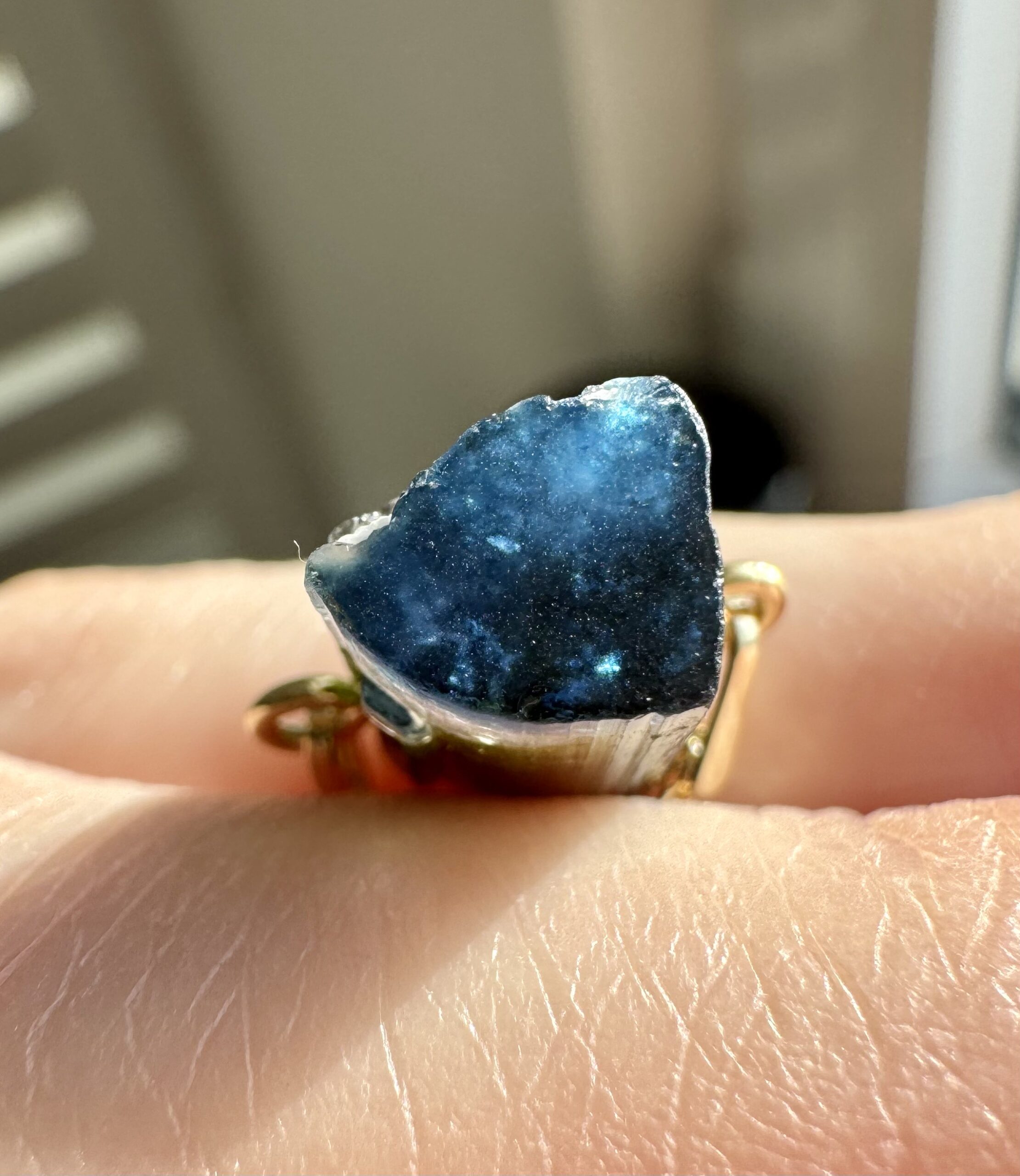 Naturalna struktura: kamień nie jest szlifowany na klasyczne fasety – zachowana jest jego surowa, naturalna forma, co dodaje autentyczności i charakteru.