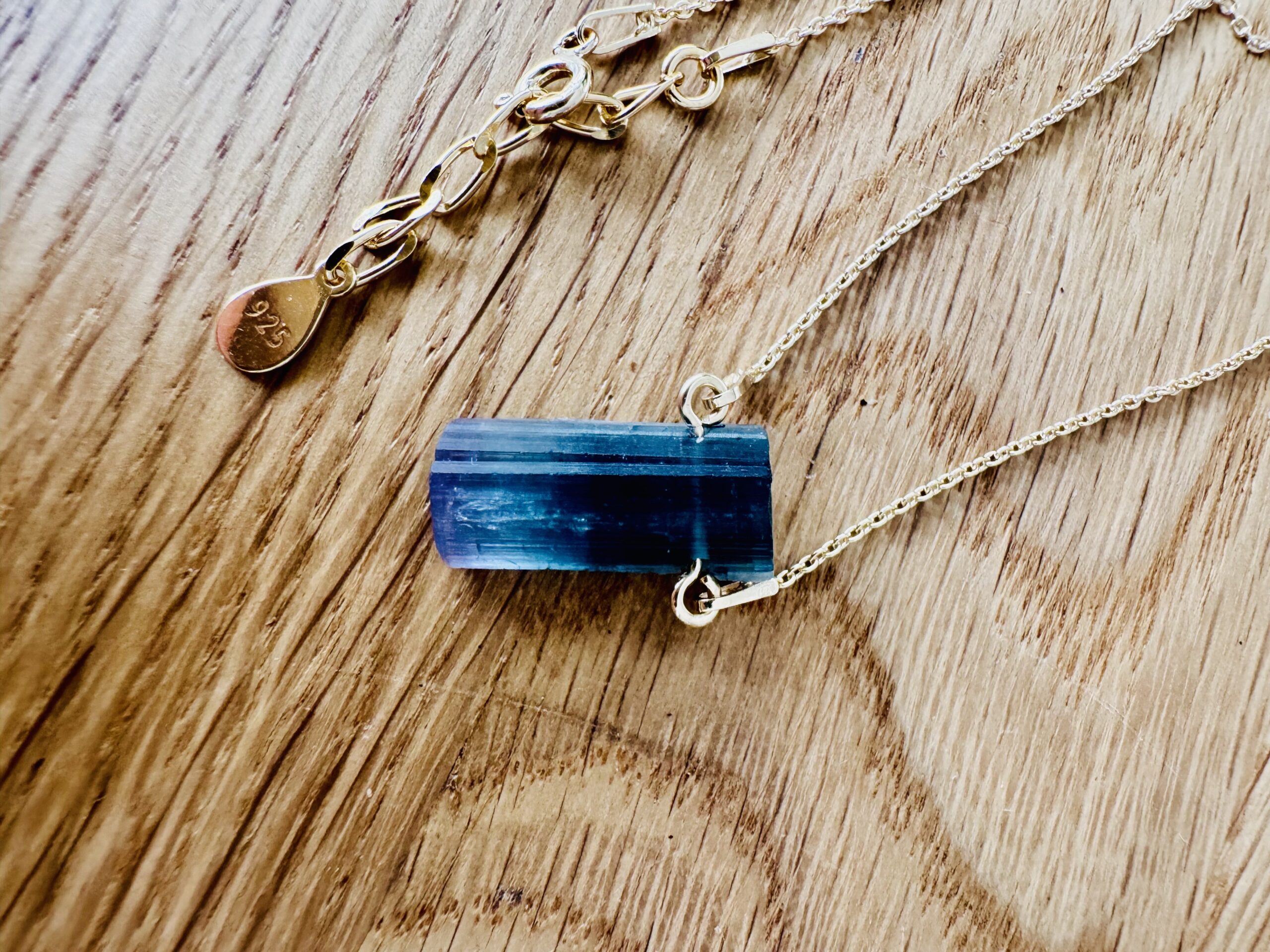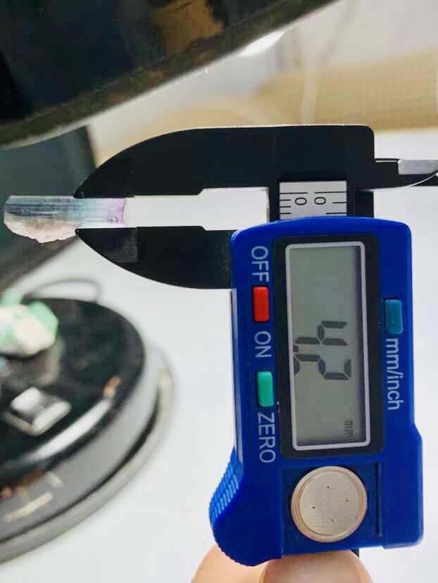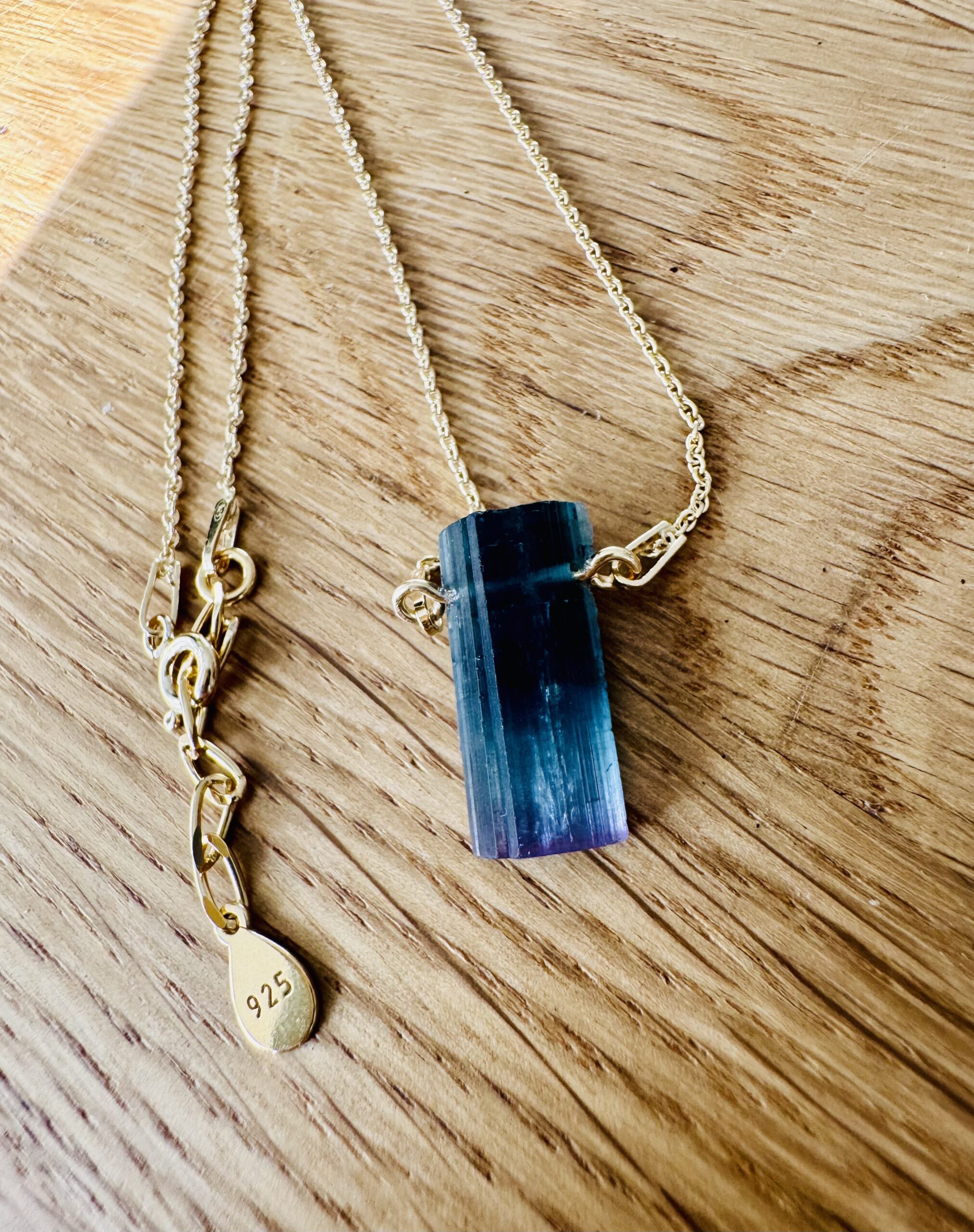 To naprawdę wyjątkowy Okaz o barwach indygo, zieleni i różowo-fioletowego światła, z delikatnym naturalnym kwarcem po tylnej stronie, który dopełnia go subtelnym blaskiem.