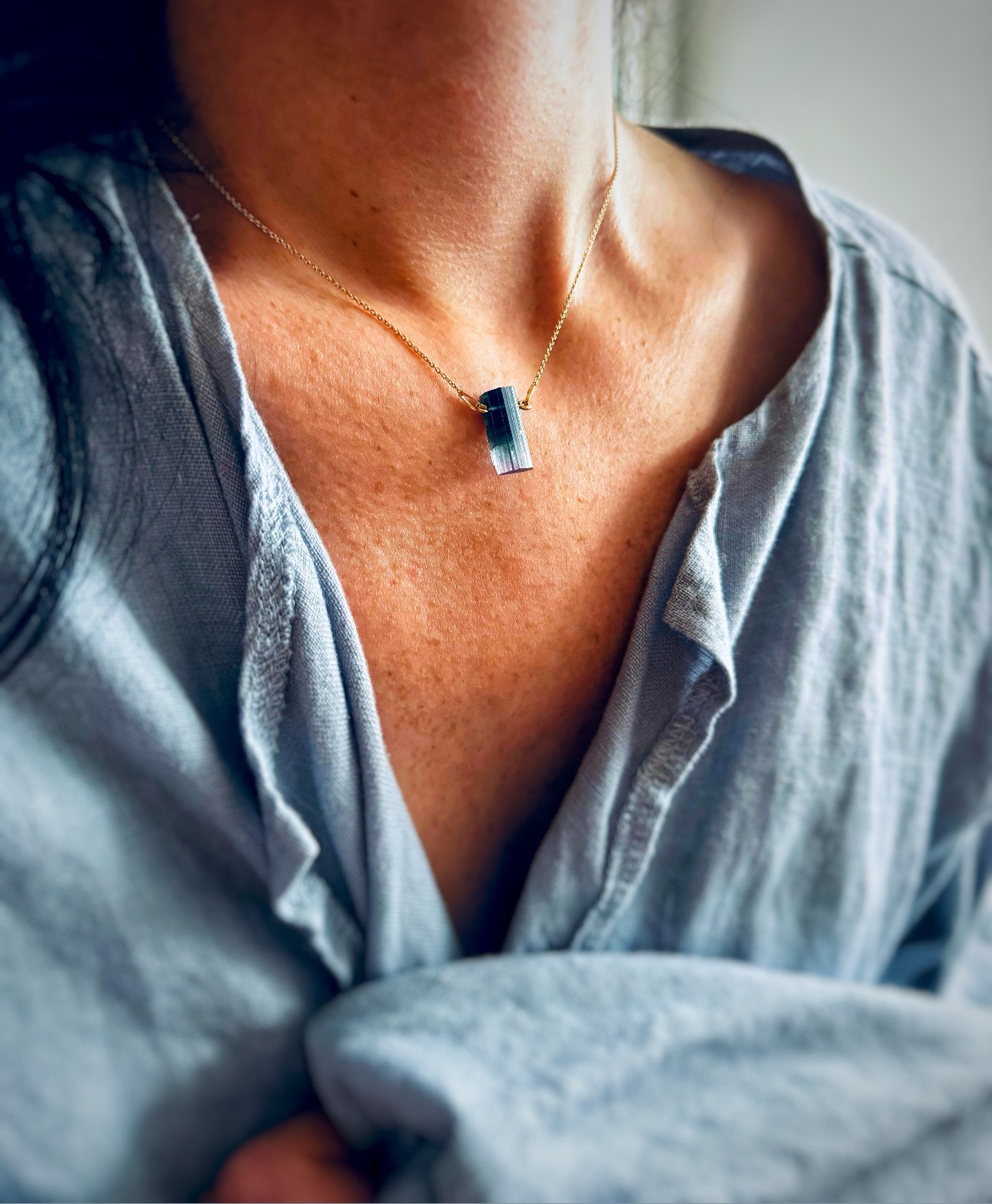 - Energia i symbolika: turmalin w barwach nocy i świtu otwiera serce na harmonię i subtelną siłę, a w połączeniu z kwarcem wzmacnia swoje właściwości.