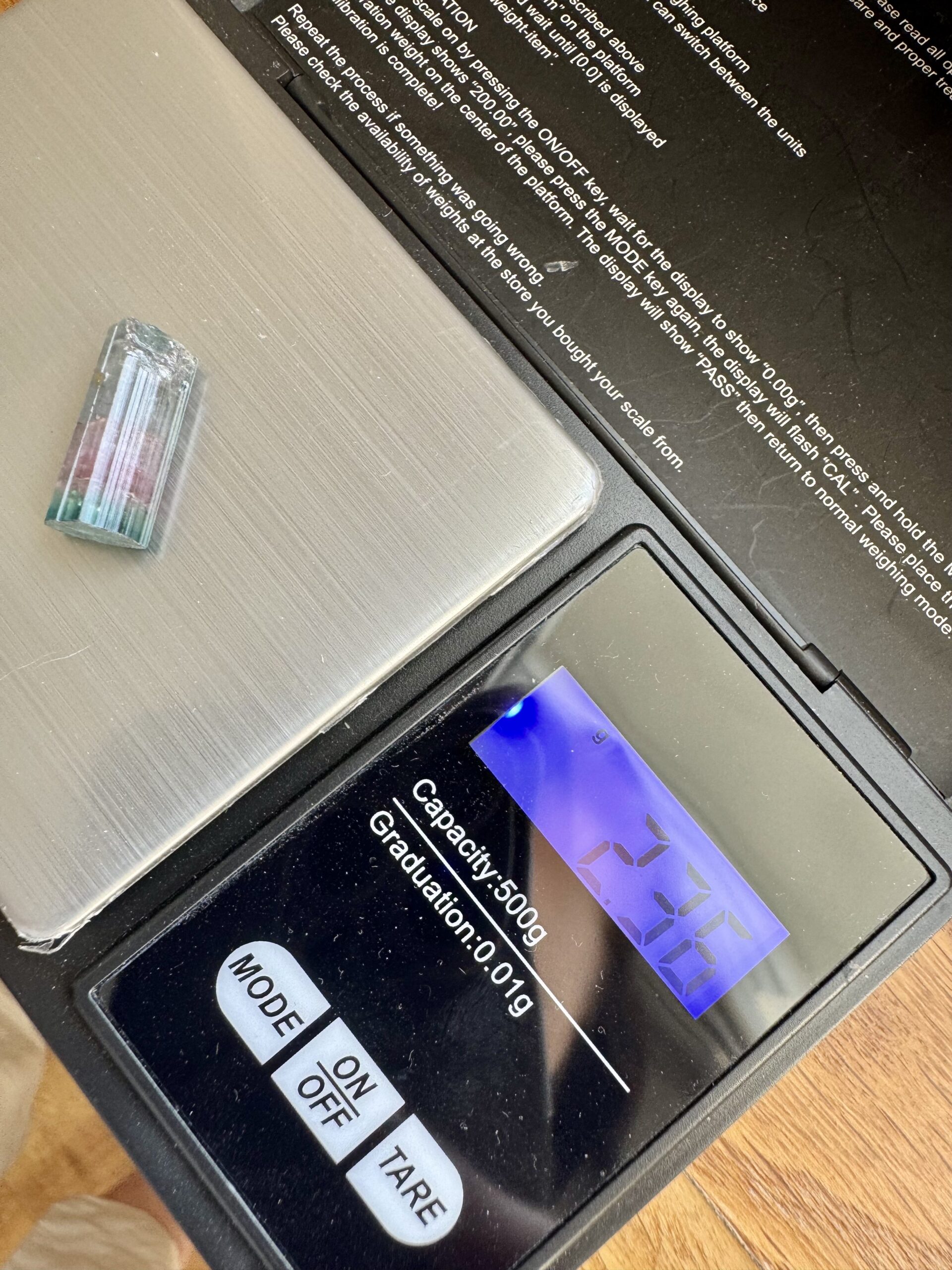 Waga kamienia to 2,36 g, czyli około 11,8 karata.